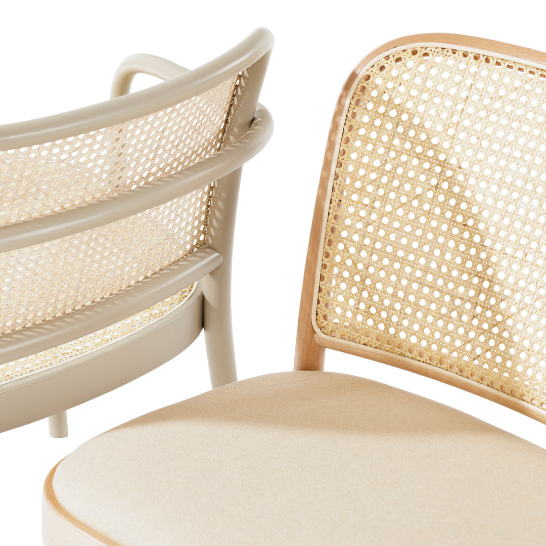 A distinctive, yet timeless lounge armchair that will form the heart of your relaxation space. The shapes are based on the 811 model and can be combined with upholstery or cane weaves.