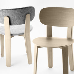 The Triku chair has a structure in solid oak. The seat and back are in plywood (2 faces oak veneer) or upholstered in leather, eco-leather or fabric.