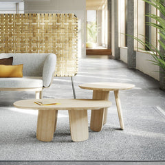 The Triku coffee table has a solid oak construction. Available in three different sizes, these coffee tables have been thought out to form a set or stand alone.