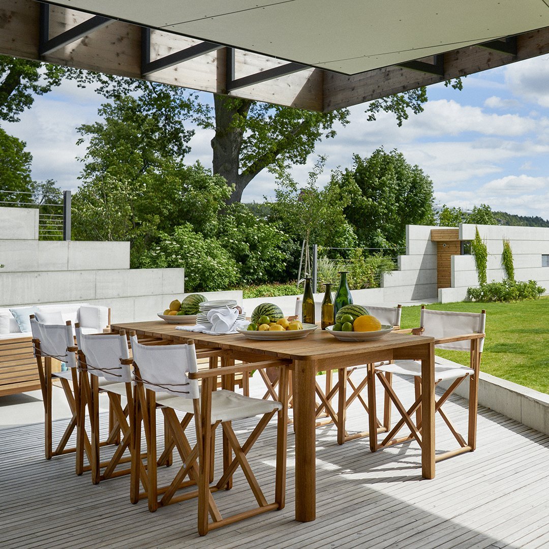 This table is named after an island just east of Sandhamn in the Stockholm archipelago. It looks almost like a pier that stretches, slat by slat, over the water. The roundness of the corners is soft, like rocks that have been polished by the sea for thousands of years.