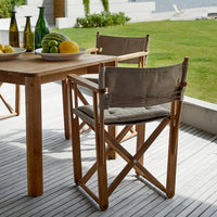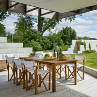 The Korso Dining Table is an extension table made out of teak. It can be used with or without the extension. The extension consists of two pieces, each measuring 35.5" in depth.