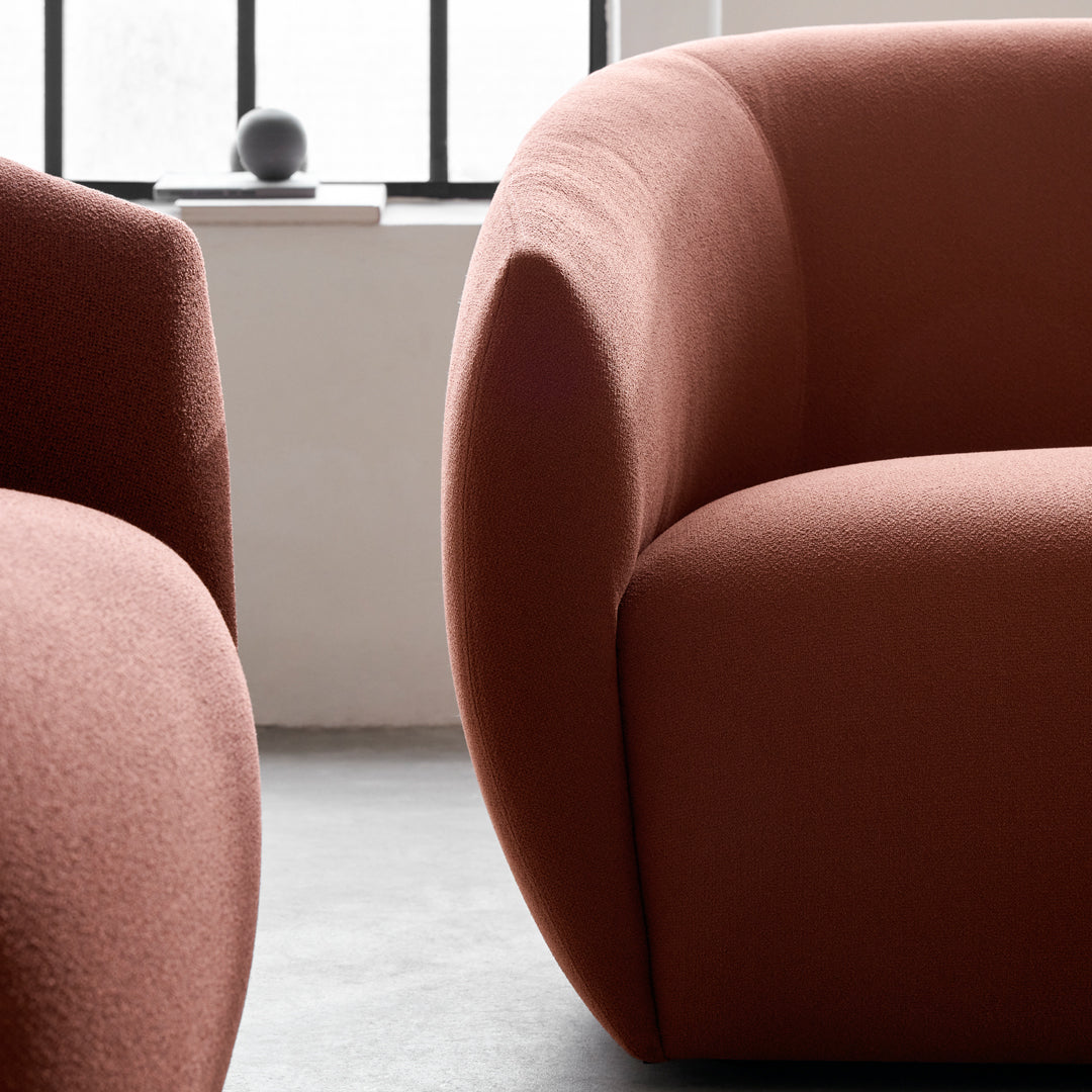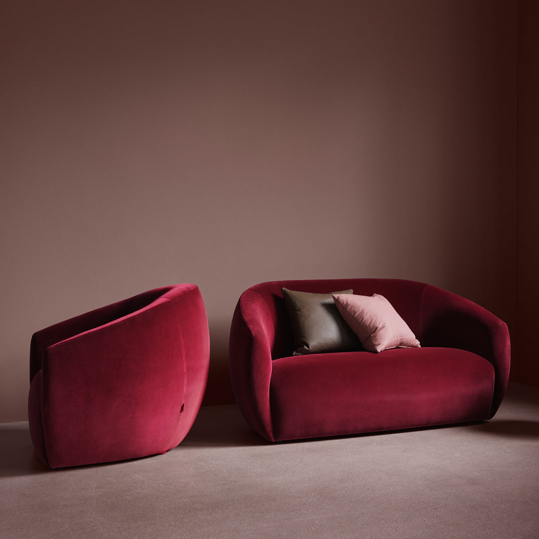 Lobby Upholstery Range is defined by a feminine rounded shell contrasted by a sharp profile. With its compact dimensions and generous padding, the Lobby collection embodies a warm yet contemporary sofa.