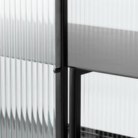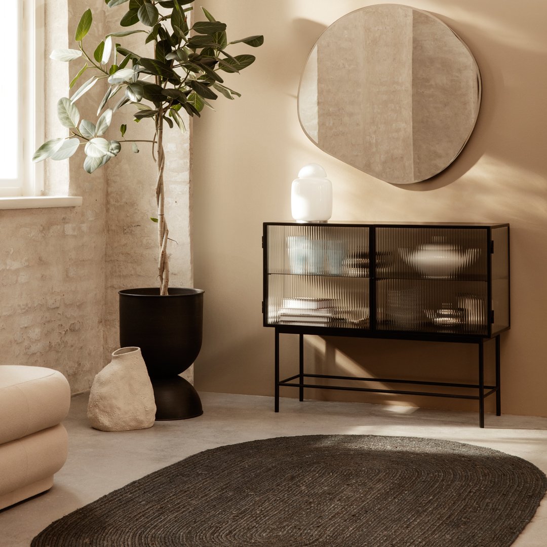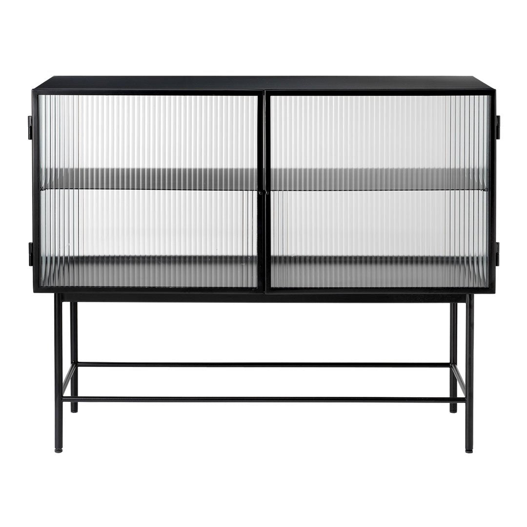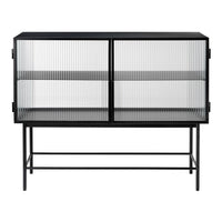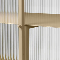 Perfect for concealing clutter in a busy hallway or as an elegant storage solution for a home office, bathroom or dining room, the sleek metal frame of our Haze Sideboard is coated with an elegant cashmere color that blends seamlessly into any interior style. Reeded glass walls and doors continue the sophisticated expression, blurring the cupboard’s contents from prying eyes.