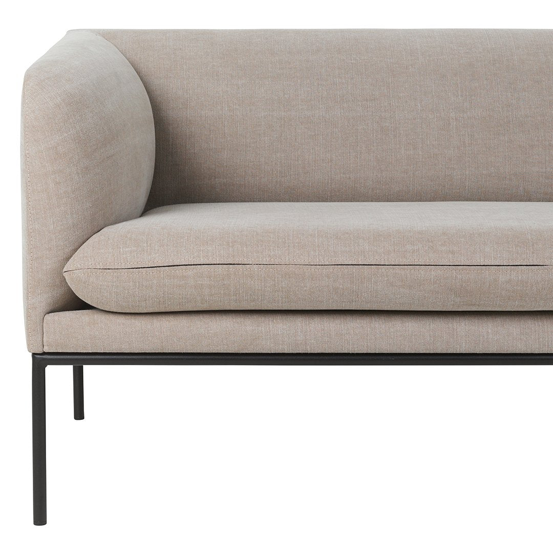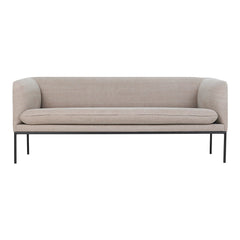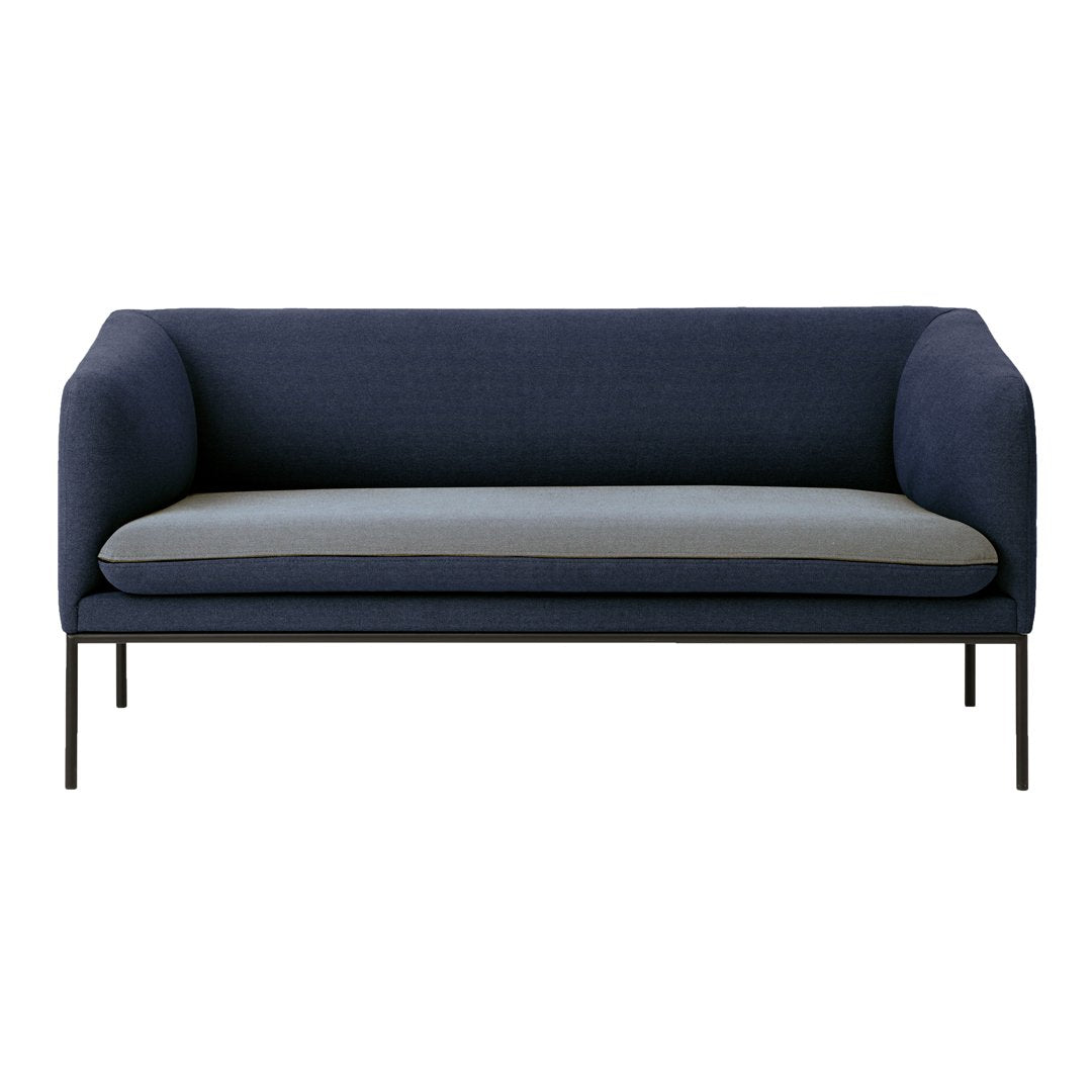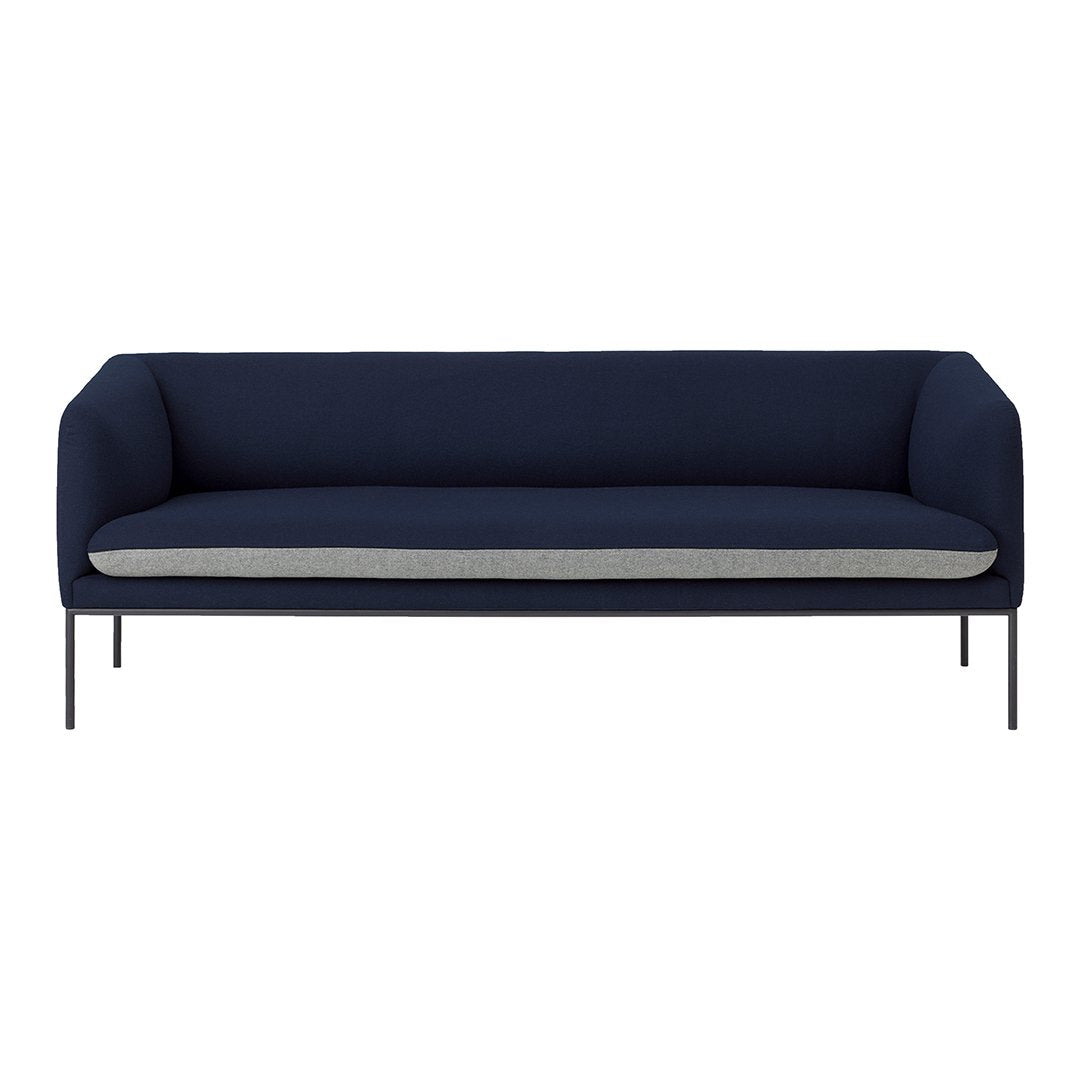 This modern and multifunctional 2-seater & 3-seater is all about contrasts, as a strict sculptural outer shape complements an inviting rounded inner with organic curves. The reversible seat cushion is dual-tone and can be turned around in a snap in order to let you decide whether you want a classic or a bolder look depending on your mood or personal preference. No matter which color you choose, this sofa has a timeless and clean look with its tight upholstery and simple frame in powder coated metal, yet with a feminine touch due to the soft inner curves and warm materials. In addition to the light and slim metal legs – which give an elegant, floating expression – the discrete size makes this sofa practical and easy to fit in to your existing furniture and mix with your personal style.