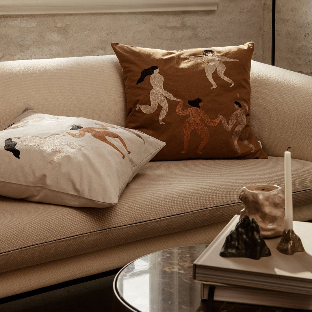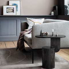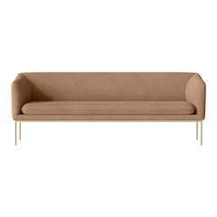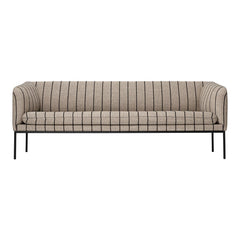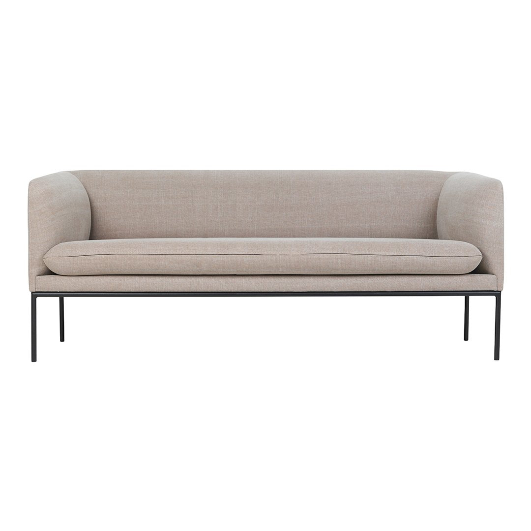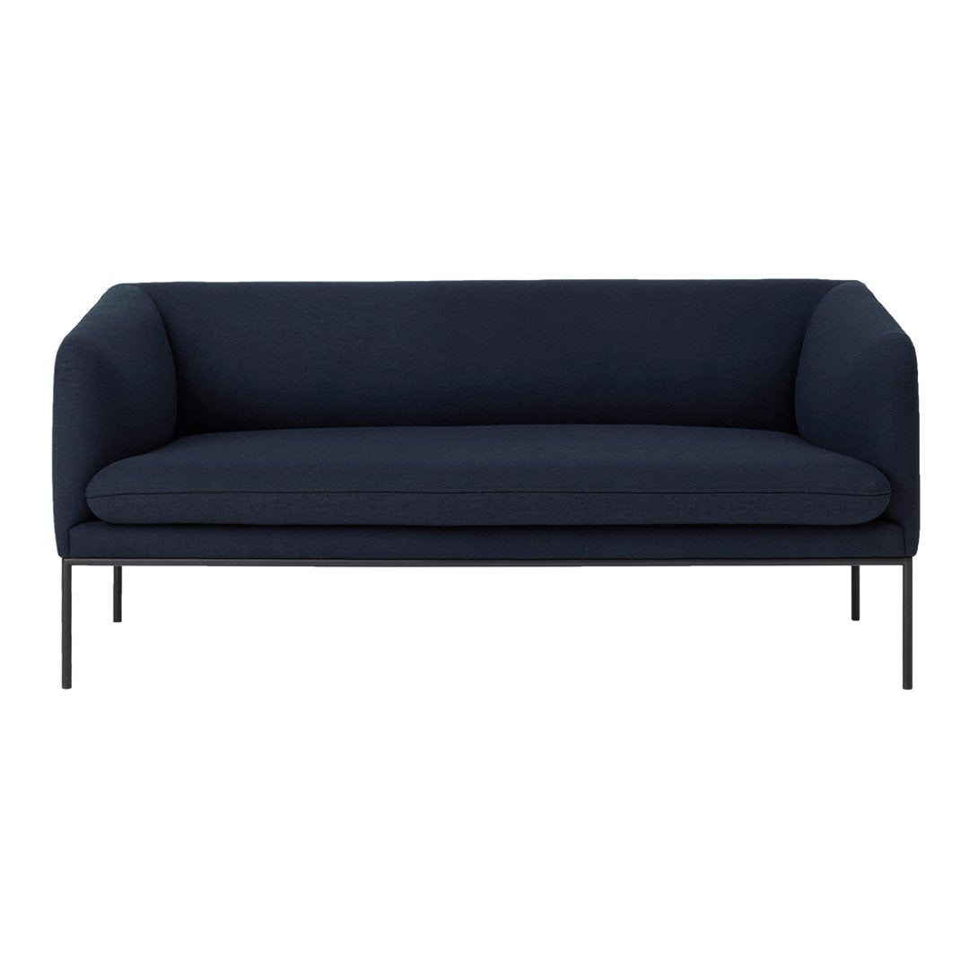 This modern and multifunctional 2-seater & 3-seater is all about contrasts, as a strict sculptural outer shape complements an inviting rounded inner with organic curves. The reversible seat cushion is dual-tone and can be turned around in a snap in order to let you decide whether you want a classic or a bolder look depending on your mood or personal preference. No matter which color you choose, this sofa has a timeless and clean look with its tight upholstery and simple frame in powder coated metal, yet with a feminine touch due to the soft inner curves and warm materials. In addition to the light and slim metal legs – which give an elegant, floating expression – the discrete size makes this sofa practical and easy to fit in to your existing furniture and mix with your personal style.