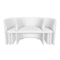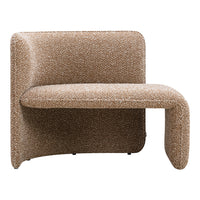 The design has a characterful persona with upholstered elements that bring a sense of softness to modern spaces, joined by the functionality of its curved back, allowing for the user to be seated at multiple positions, and the elegant side table.