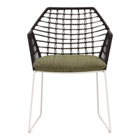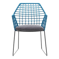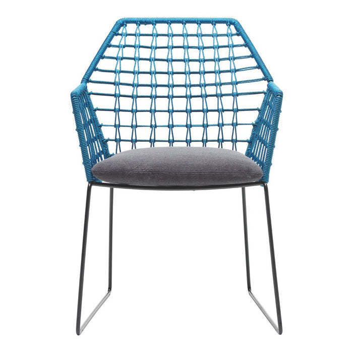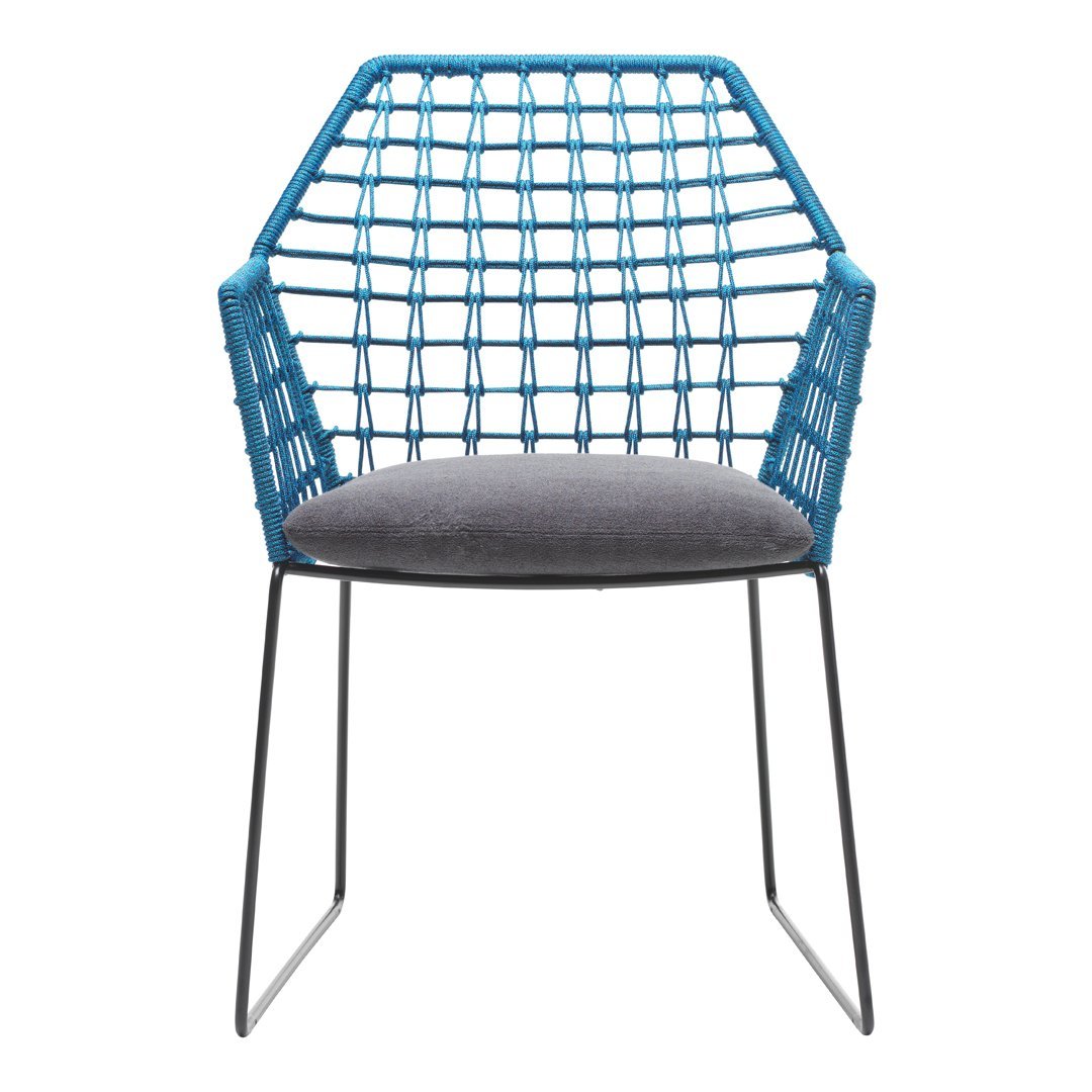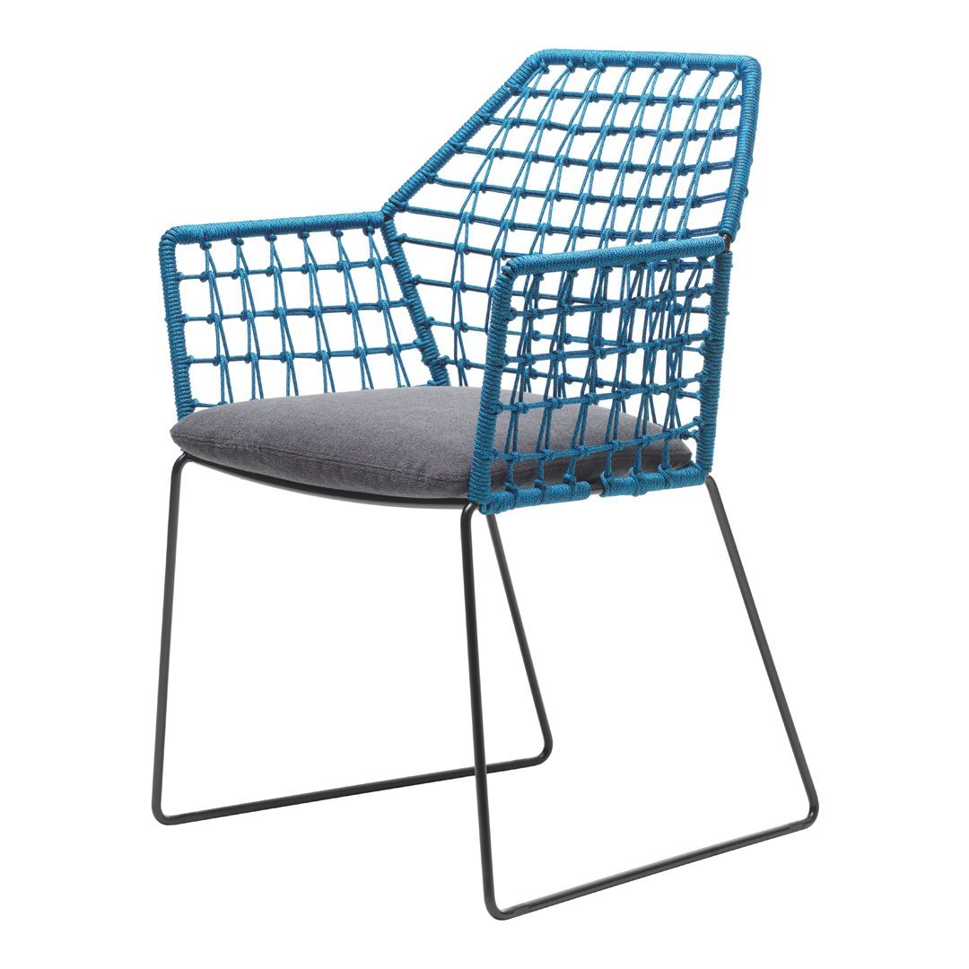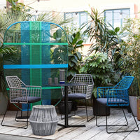 The New York outdoor collection expands with a line of exclusive woven seating made entirely by hand. New York Sofa Soleil is the product of careful research into materials and the desire to maintain the unique original design. Woven nautical cords of different colors softly cover the painted metal rod structure. The ergonomic cushion is covered in a quick-drying, non-absorbent technical fabric, and its superior performance in the Martindale test guarantees abrasion resistance as well as hygienic breathability. In 2020 the collection adds a new element: the Lounge Armchair. The New York Soleil embodies outdoor living with a casual style and colorful charm. It is available in different blends and solid colors. The collection includes a sofa, an armchair, a pouf, a chair with or without armrests and a stool. Fully removable covers.