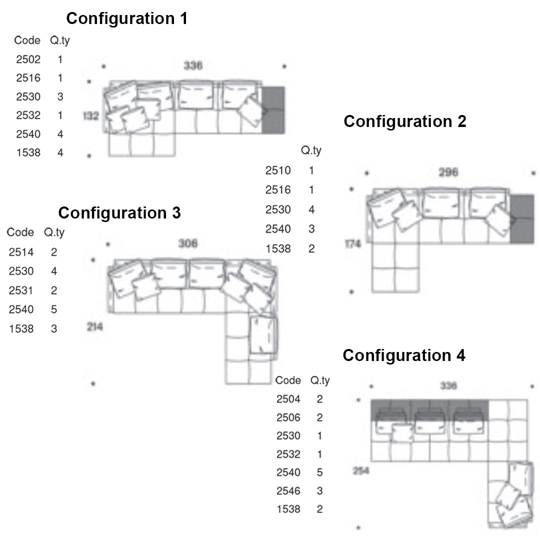 Configuration 4: 132.3" W x 100" D x 26.4" H | Seat: 16.1" SH