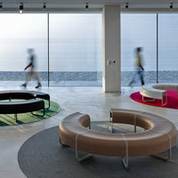 A system of curved and linear modular elements that can be repeated infinitely with a "millipede" effect. Featuring a design of great formal simplicity, the metal support allowing the various elements to combine is barely invisible.