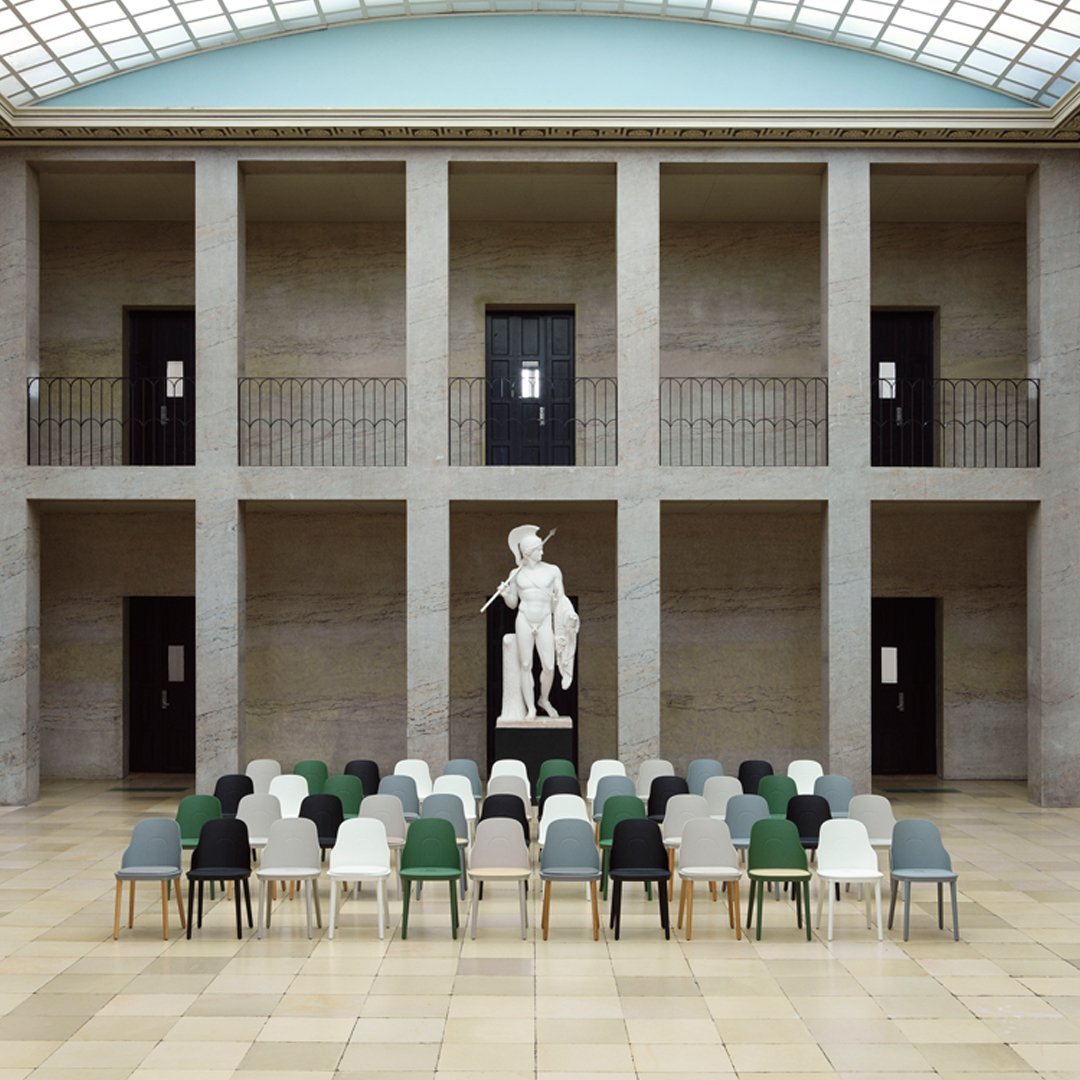 The Allez chair is a knock-down component-based chair consisting of seven main components of a frame, a seat, a backrest and four legs. The chair is suitable for indoor or outdoor use and all parts are replaceable. The Allez chair is gas-injection molded using pure polypropylene (PP) and weighs only 3.6 kg.The seat is available in polyamide (PA) with a subtle cut-out, molded wicker in PP or with upholstery for indoor or outdoor. The legs are available in PP or lacquered oak.