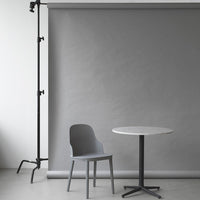 Allez table consist of a center base in cast iron with three or four legs. The tabletop comes in various sizes and shapes available in marble, Veneer, or brushed stainless steel. Allez table is suitable for indoor or outdoor use. The table is delivered flat-packed and must be assembled using the included tools. The tabletop is mounted with four screws.The marble tabletops are treated with a surface treatment that penetrates into the material and thereby provides a long-term protection. The surface should not be exposed to acidic foods or beverages, which can leave stains on the surface.