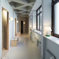 Cellu Lamp comprises a lampshade made from polypropylene that rests on a powder coated aluminum stem and powder coated steel base. The leg and base come in complementary color combinations. Cellu comes as a table lamp and a floor lamp.