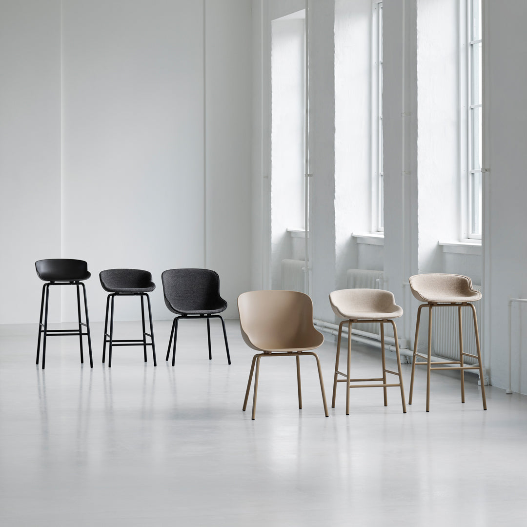 Inspired by Danish hygge, designer Simon Legald has created the Hyg furniture series. When the series was introduced in 2018, it consisted of a 2-seater sofa, lounge chairs and a footstool. In 2020, the range expands with a chair and barstool that share the characteristics of the lounge series: the hearty, organic curves designed with a focus on sublime comfort.