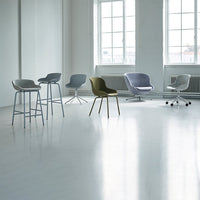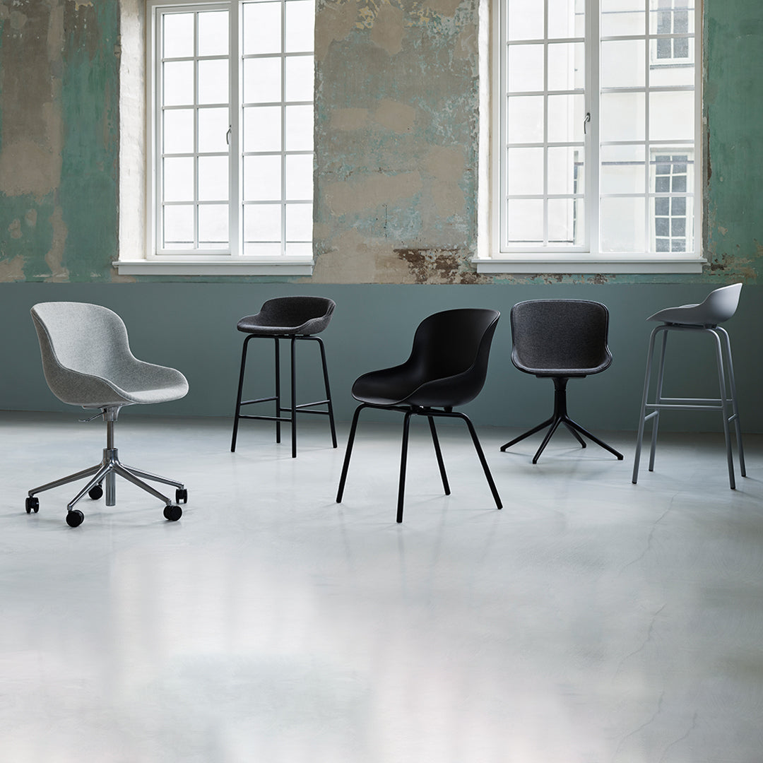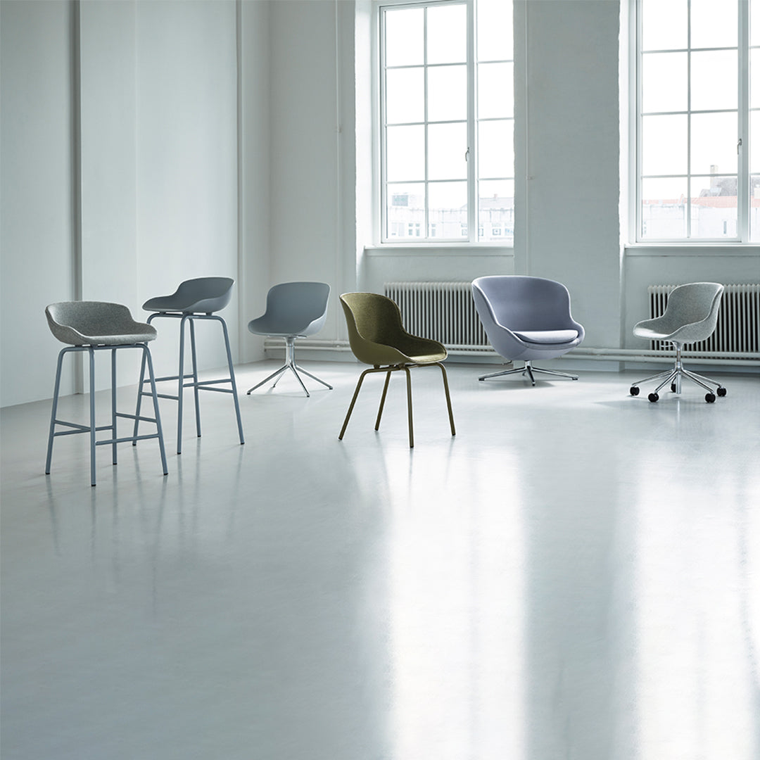 Inspired by Danish hygge, designer Simon Legald has created the Hyg furniture series. When the series was introduced in 2018, it consisted of a 2-seater sofa, lounge chairs and a footstool. In 2020, the range expands with a chair and barstool that share the characteristics of the lounge series: the hearty, organic curves designed with a focus on sublime comfort.
