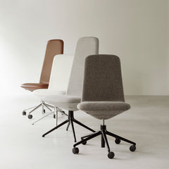 Off Chair is crafted with a specific focus on catering to the need for aesthetic office environments while providing a highly functional and versatile task chair with a meticulous attention to detail and comfort. Off Chair provides all the classic functions of a task chair with essential technical elements such as gas lift and tilt functions beautifully integrated into the construction of the chair. The design offers immediate comfort, providing the ideal conditions for a good working posture throughout the day. Off Chair obtains its minimalist expression through its rectangular, yet slightly rounded frame. Off is available with optional cushioned pads, which, in addition to their aesthetic appeal, serve to provide the design with further comfort. The seat and backrest come in either high or low in a wide selection of various fabrics and leathers, providing an array of color choices for personal customization. The possibility of choosing a chair with or without armrests allows for tailoring it to any specific need, taste or setting.
