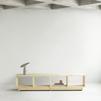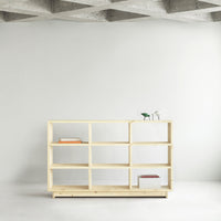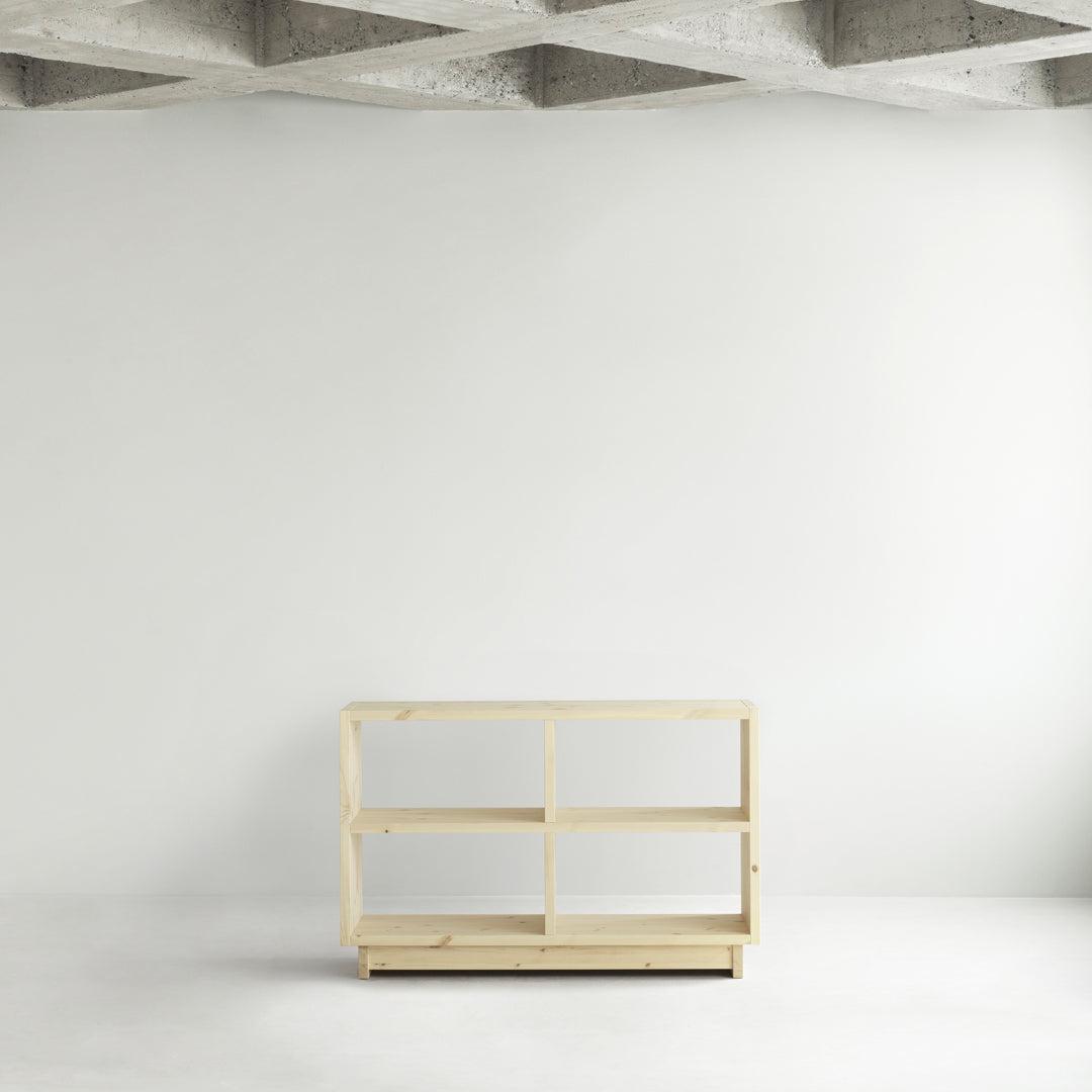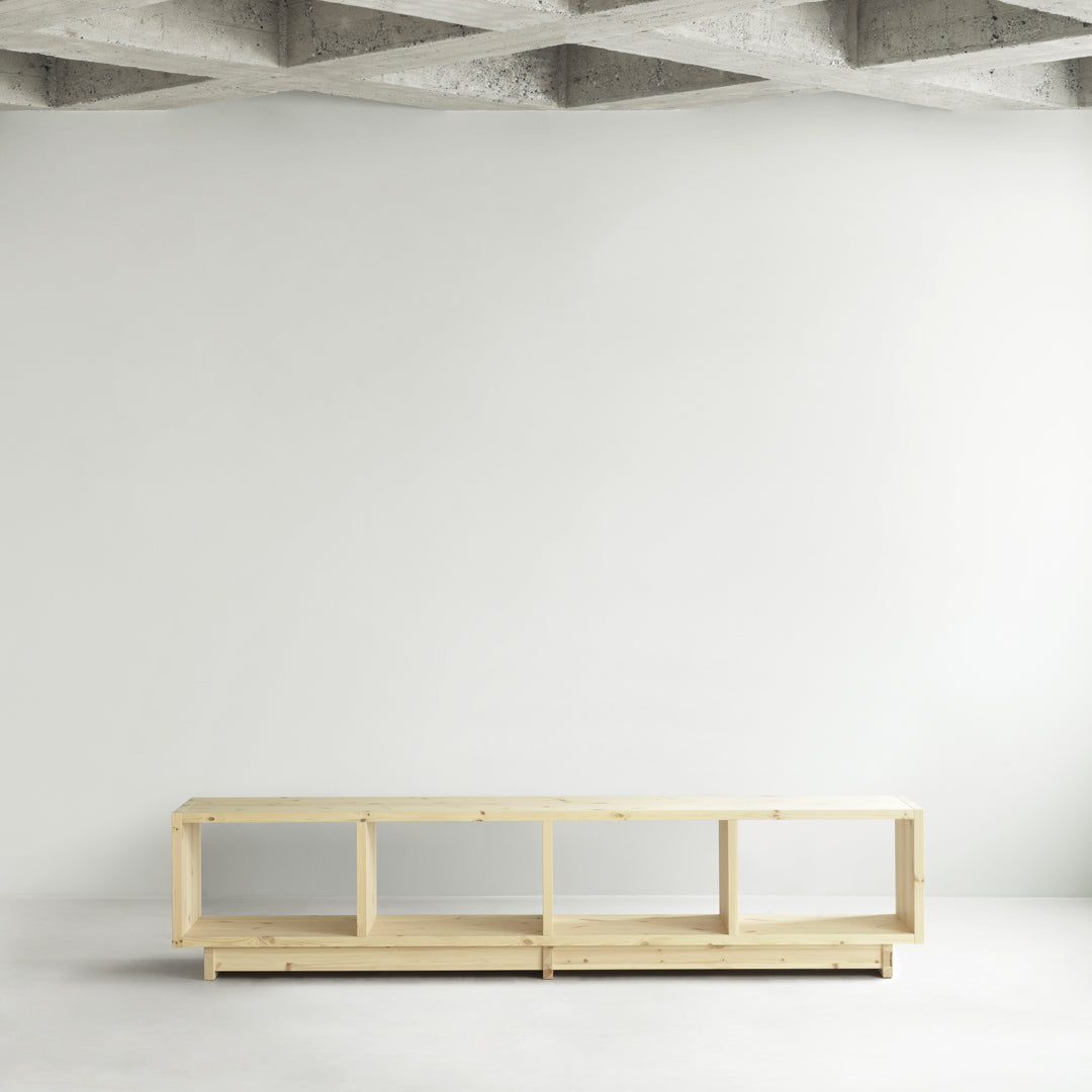 Fyr Bookcase is crafted from FSC™️ certified (FSC-C163461) pine wood planks and pine from other controlled sources, and is a simplistic storage solution with an honest expression. Available in three variants, the collection offers storage solutions in three different sizes ranging from a large bookcase to a long, low one that in addition to storage, can be used as a bench.