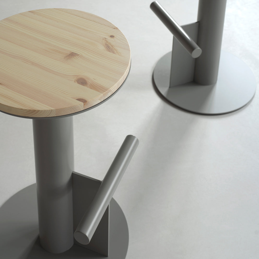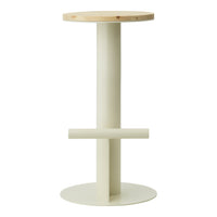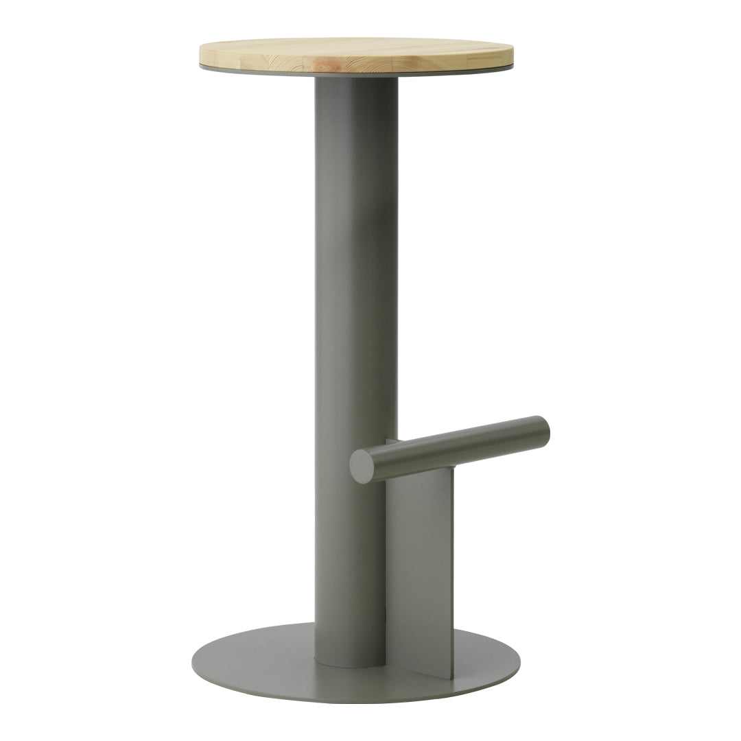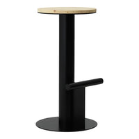 The Pole Barstool is a characterful design full of contrasting geometric elements. A powder-coated steel tube with a smaller tube as a foot piece forms the base, while a circular plate made of solid pine acts as a seat. The Pole Barstool is available in two different heights of 65 cm or 75 cm and in a number of different color combinations.