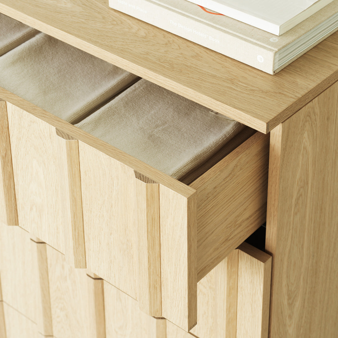 Available in Oak or Soft Black finishes, each piece is crafted using a high-quality blend of lacquered oak veneer and solid oak, ensuring not only durability, but also a minimalistic and natural aesthetic. Conclusively, the Rib collection presents a versatile and timeless addition to any residential or commercial environment.
