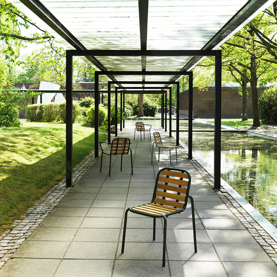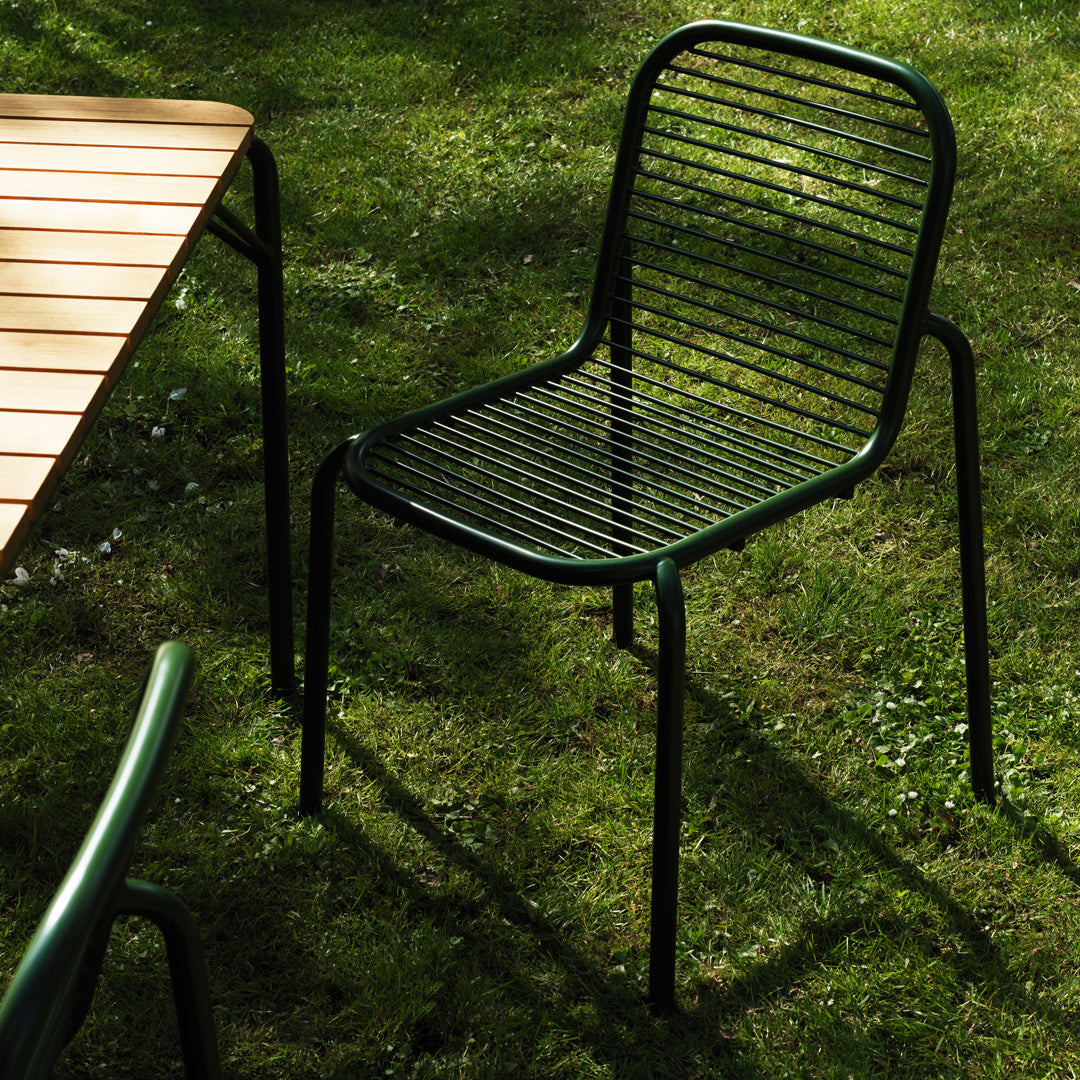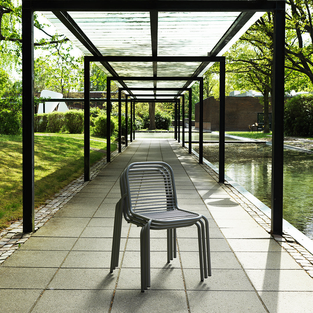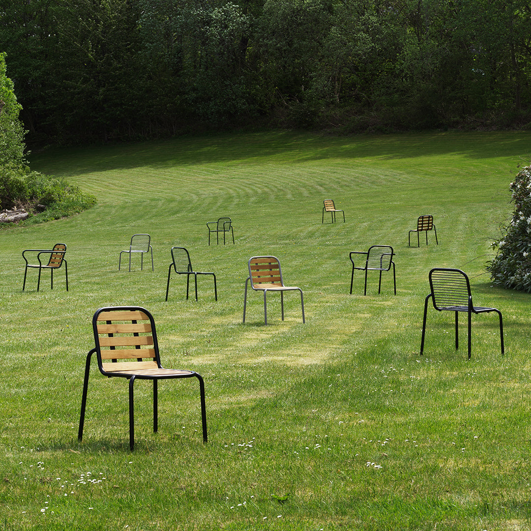 Vig is a collection of outdoor furniture in a timeless and functional design. The collection is made of double powder-coated steel that can withstand the wear and tear of outdoor use.