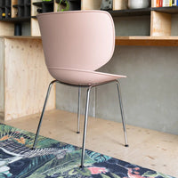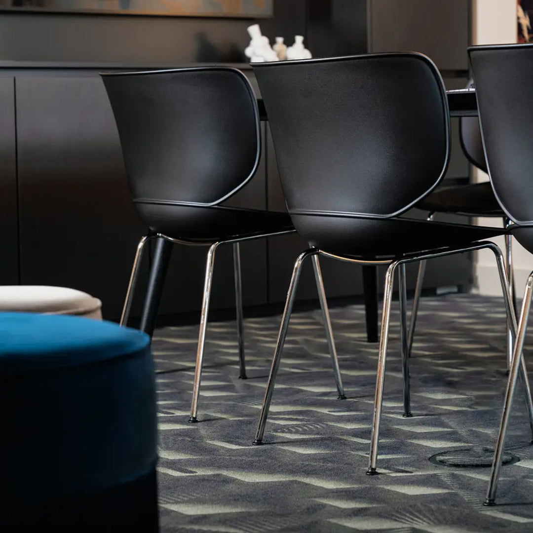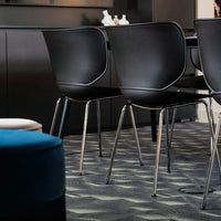 The un-upholstered Hana Chair by Simone Bonanni, sold in sets of 2, combines timeless comfort and unparalleled distinction. Inspired by the unfurling of a flower, its unique design captivates with organic shapes, curved lines, and a petal-like backrest. Versatile and customizable, the Hana Chair effortlessly blends into your home. The chair is available in six different colors but can also be upholstered to fit your style. Personalize further by choosing the stackable or non-stackable metal base in chrome or matte black. The Hana Chair is designed to last. The encompassing backrest provides you with support and flexibility, prioritizing comfort without compromising on aesthetics. The un-upholstered Hana Chair is sold in sets of 2 identical configured chairs.