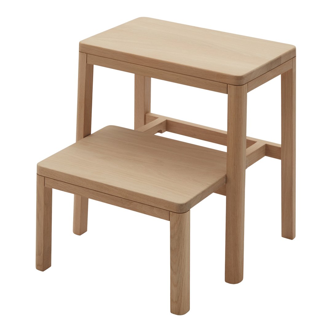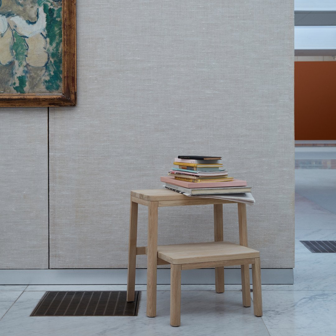 Noboru means ’to climb’ in Japanese and is a multifunctional step ladder. The lower step can slide in, taking up less space and turning the step ladder into a stool or side table. Under the step a short handle is milled, so you can grab it and pull it out and push it back in. The minimalistic step ladder in solid oak has slim profiles on all edges allowing the assemblings to be visible, which gives Noboru its aesthetic excess in the overall elegant and discrete expression.