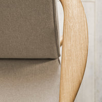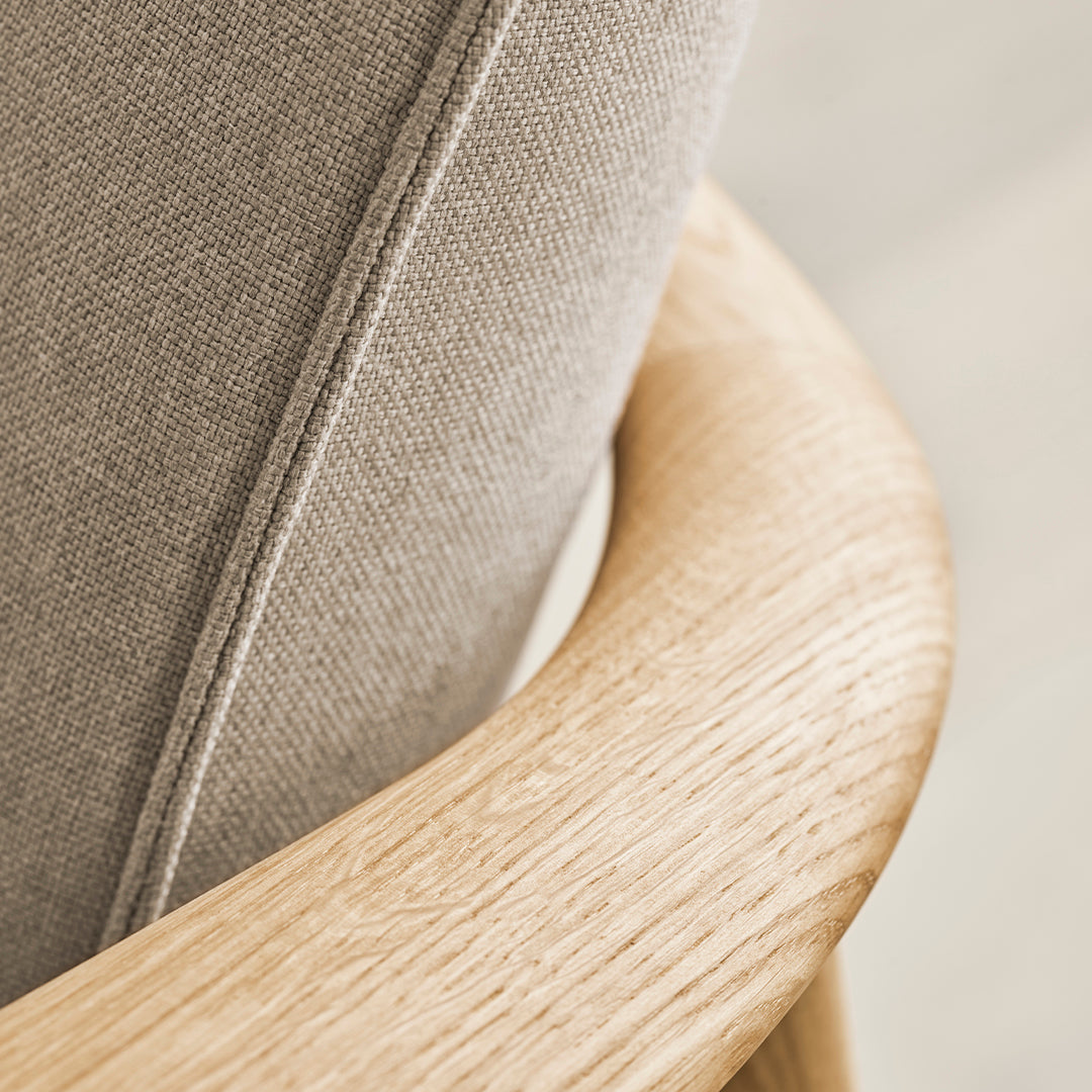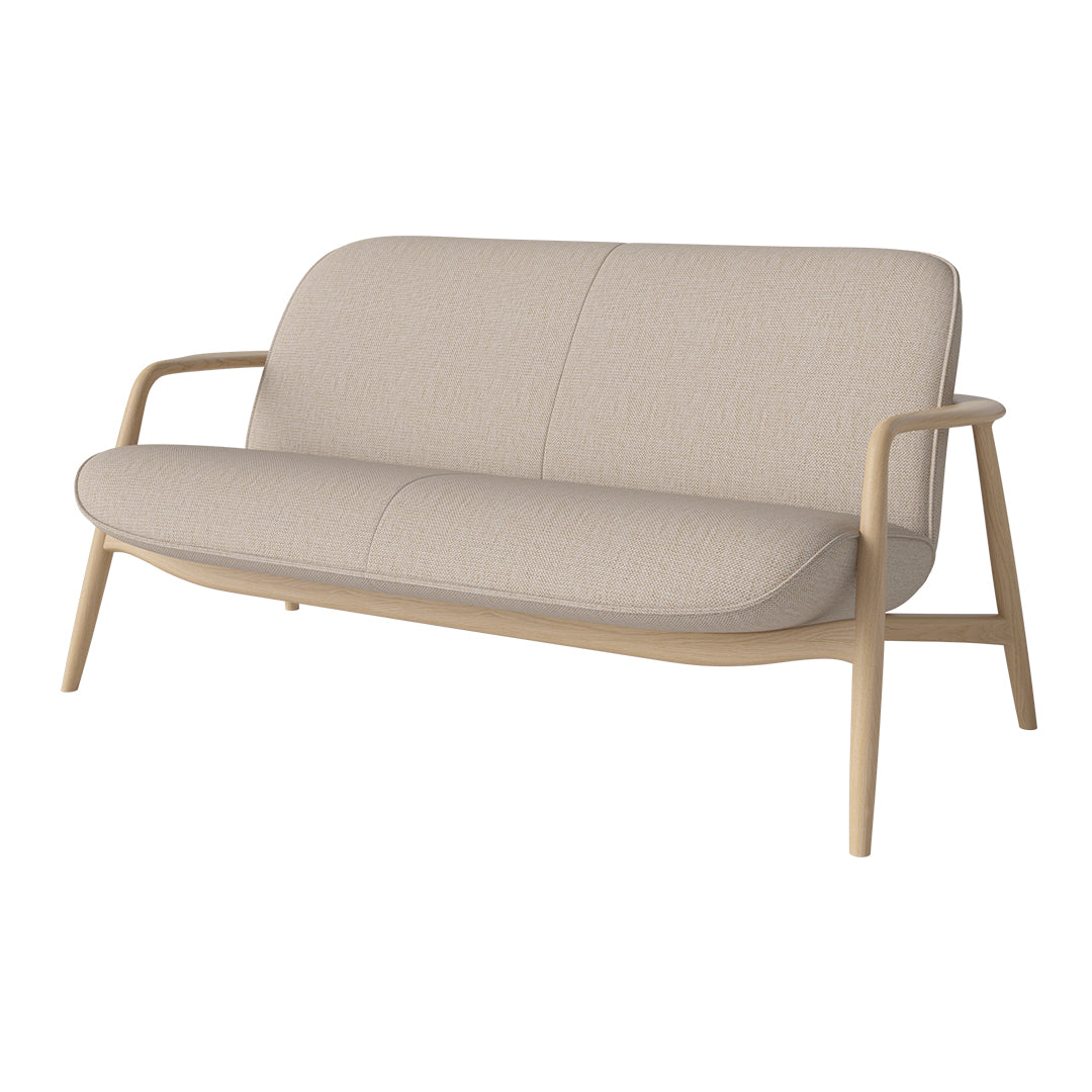 Designed by the Italian design studio Skrivo, the Bowie series feature a sofa and an armchair influenced by mid-century Scandinavian design. A refined two-seater sofa that combines modern and traditional woodworking techniques for a clean and effortless Scandinavian look. A softly curved frame made in FSC® certified oak seamlessly extends from legs to armrests, wrapping around the back and making the seat weightless in its expression. Tailormade with your choice of upholstery or traceable leather and perfect for the small break in the office, hall, or conservatory.