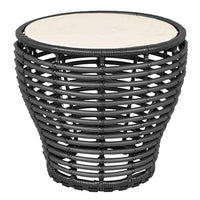 Basket coffee table is inspired by the nature with its round shapes providing an organic design expression. Basket coffee table is manufactured in the durable Cane-line Weave on a hot-dip galvanized steel frame with an elegant ceramic tabletop. The combination of soft curves and edgy ceramic tabletop creates an eye-catching and refined look for your outdoor lounge area. The Basket coffee tables are available in three sizes, which complement each other beautifully.