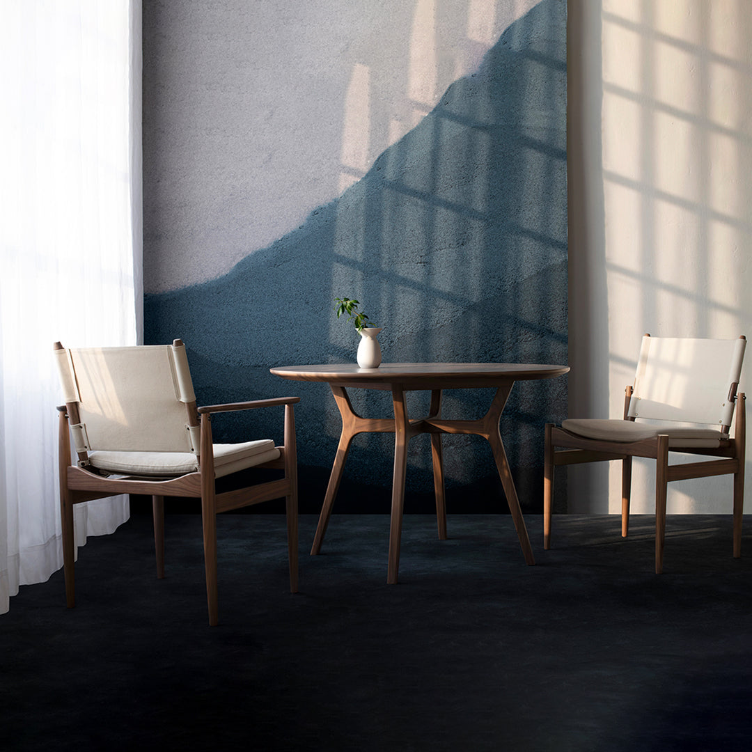 The Historic Safari Chair is an almost naïve, sturdy, simple geometric structure - with added hard and soft components to secure softness and flexibility. With attention to this vocabulary, The Journey Chair is our modern interpretation - letting comfort, modern lifestyle and behavior be the center of attention. We wanted the chair to be versatile in use and look, embedding a balance between the rustic and a more refined, modern approach into the design. The soft arch under the seat cushion compliments the strong, masculine silhouette of the chair - and enhances a lighter, sophisticated look. The thicker seat cushion and the soft back, secures a great and comfortable experience while seated.