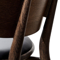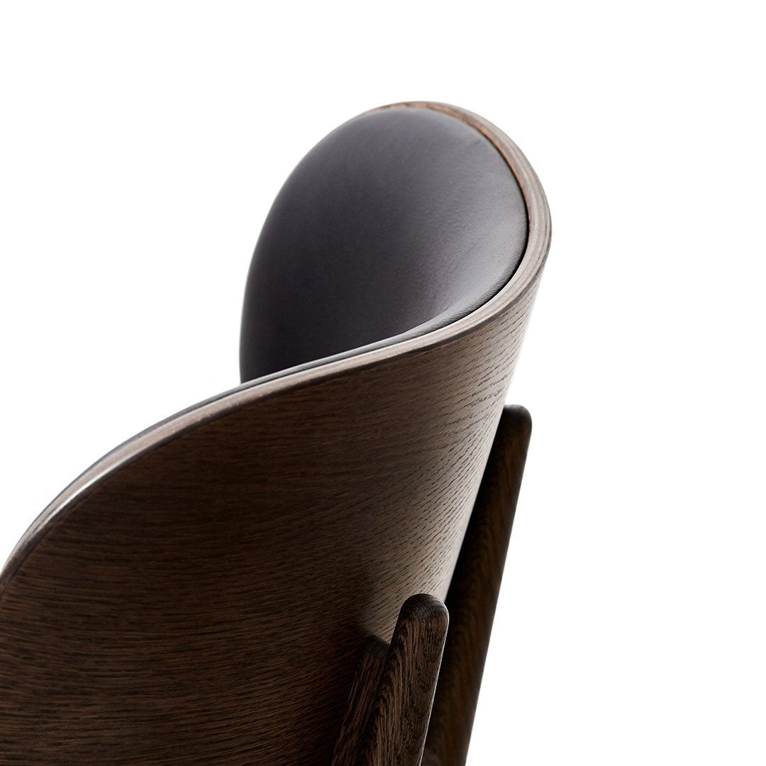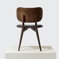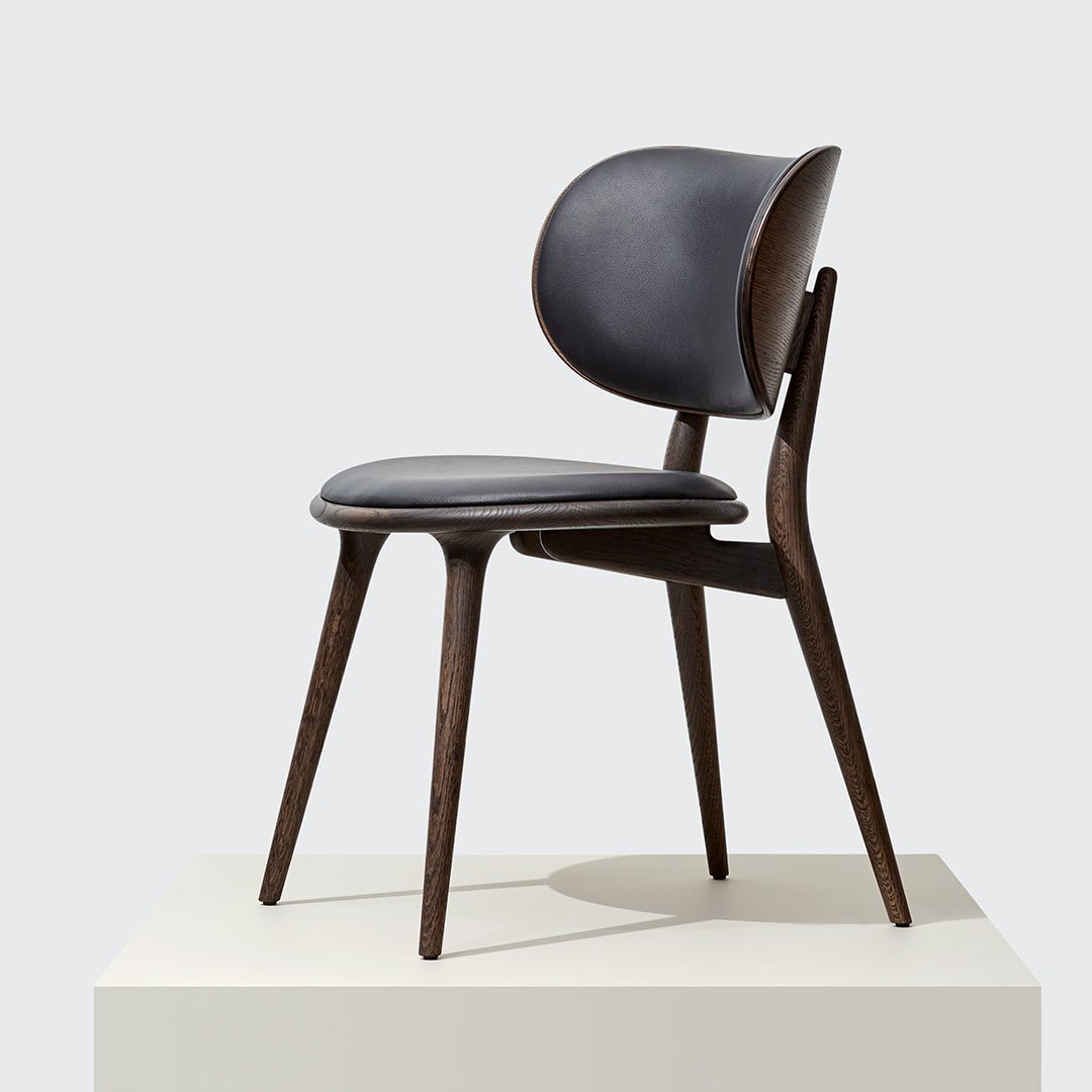 The Dining Chair designed by Space Copenhagen. The Dining Chair builds on High Stool’s beautifully fluid, sculptural and archetypal character, adding a generously rounded backrest for a heightened sense of comfort. The backrest itself is upholstered in soft durable leather and is fully supportive and comfortable so that it outweighs the need for armrests.
