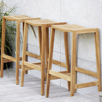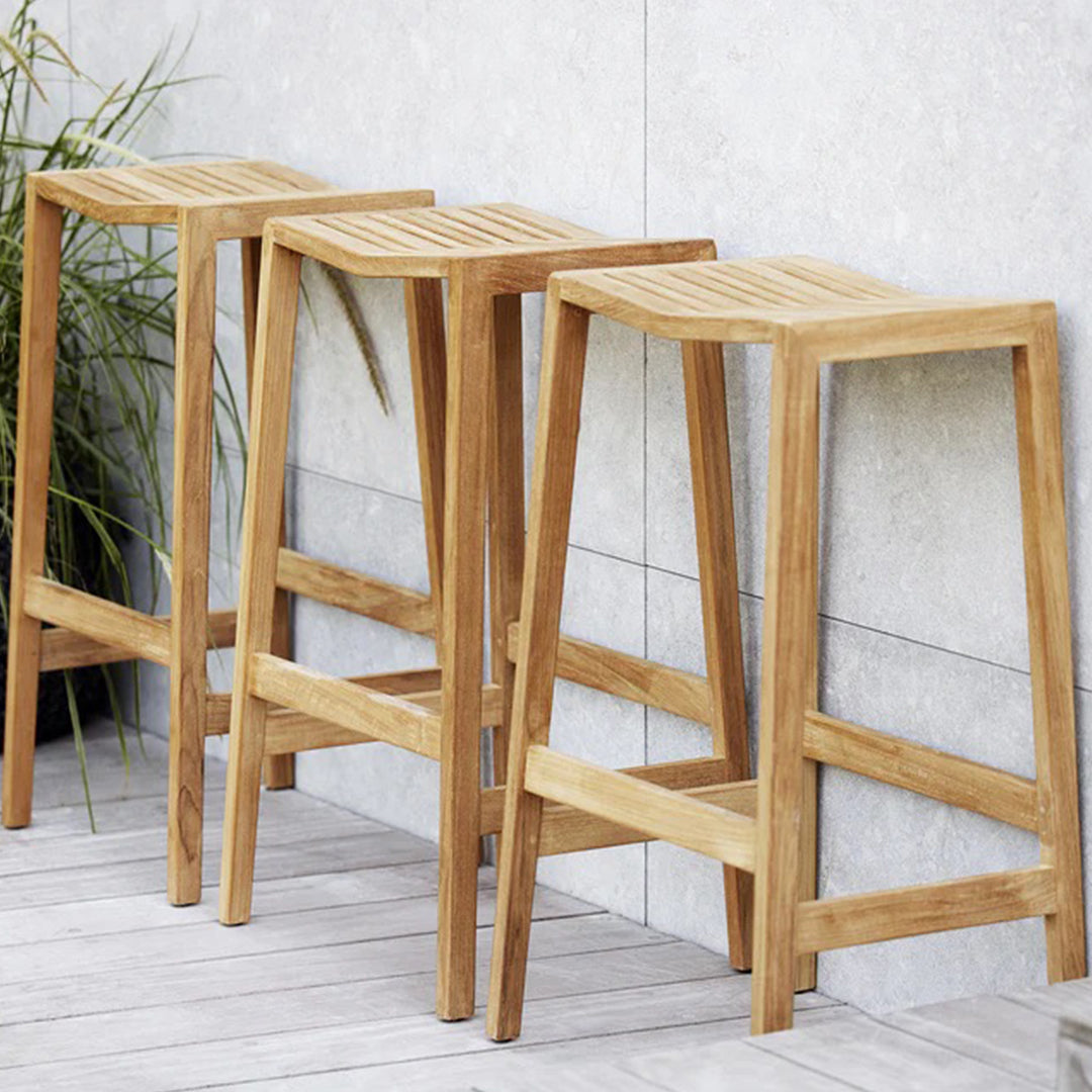 The Flip bar chair is designed by the Danish design duo Strand+Hvass and fits perfectly in the Flip series. Flip bar chair has a slight incline in the seat to ensure a good seating comfort and the horizontal teak bar provides a good footrest. The special incline adds a unique look to the design of the chair. Flip bar chair is made from Grade A teak, which is the highest quality of teak. The teak is harvested under the SVLK certification ensuring that the teak production supports responsible forest management. To preserve the original golden-brown teak colour and maintain the fine teak wood, we recommend using Cane-line Teak Care products.