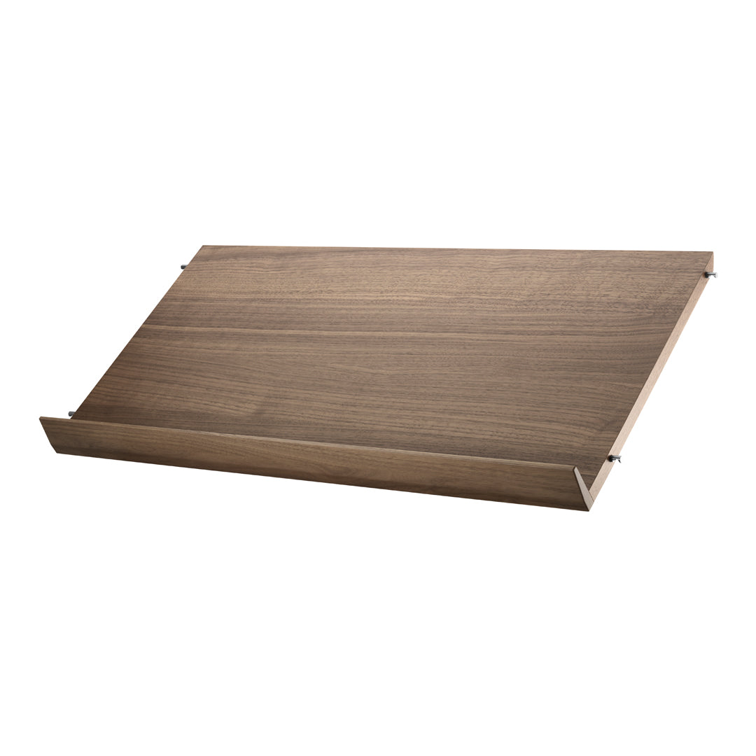 The magazine shelves in wood are available in two widths, 58 and 78 cm, and fit into 30 cm deep wire panels from String® System. The magazine shelves create a dynamic shelving combination where you have room to showcase your favourite books and magazines. Choose among different colours and wood types. Brackets are included in the packaging.