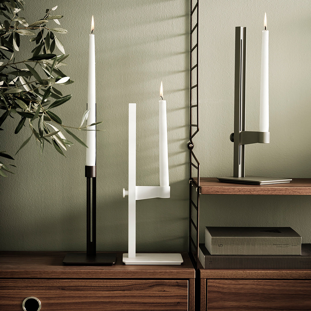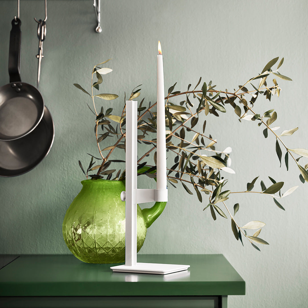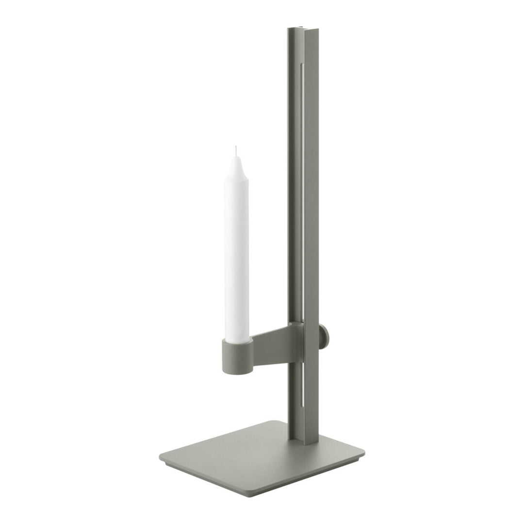 The Museum candle holder is an adjustable candle holder in aluminium. The candle holder has the following dimensions: w13 x d15 x h40 cm where the highest height for the candle is 35.5 cm, and the lowest height is 3.5 cm.