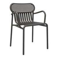 Thought for practical use, all seats are stackable. The oval and encircled shape draws the files so that they become a graphic sign. The work of horizontal and vertical slats like stripes, emphasizes the full and empty, affirming the identity of the collection.