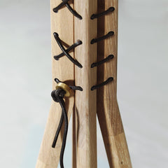 It's a simple and solid structure bound together with a leather rope, was inspired by the movements and garments of the “cancan” dancers.