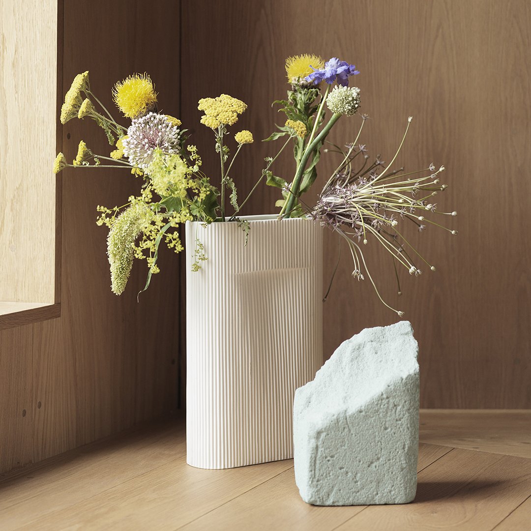 With references to its name, the Ridge Vase applies an added functionality through its refined dent, allowing for flowers to stand upright, while also working as a subtle handle when moving the vase from one room to another. The vase comes in two sizes, bring a distinct touch to any room. Place the Ridge Vase in a windowsill, on the floor or side table for a characterful design object that is unique in both its function and expression.