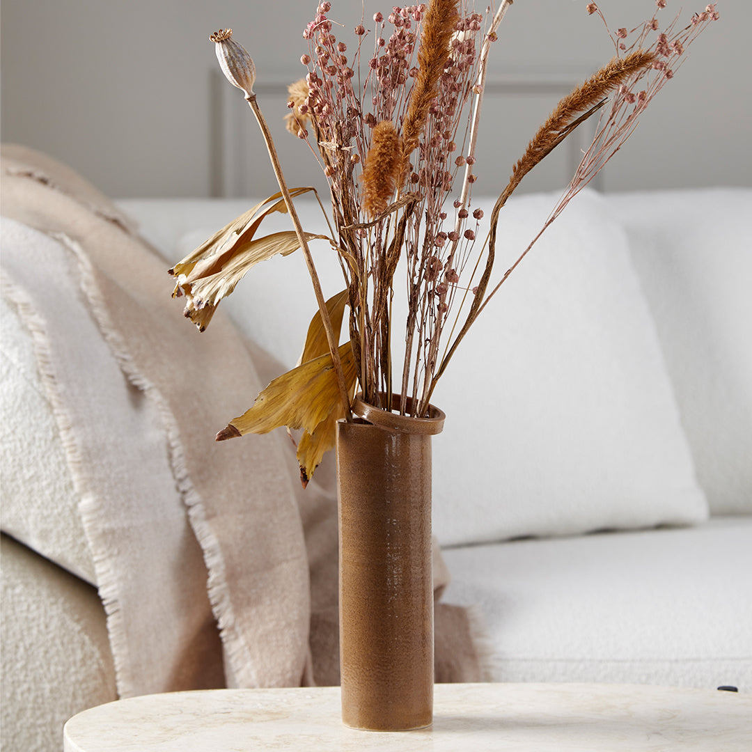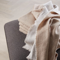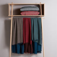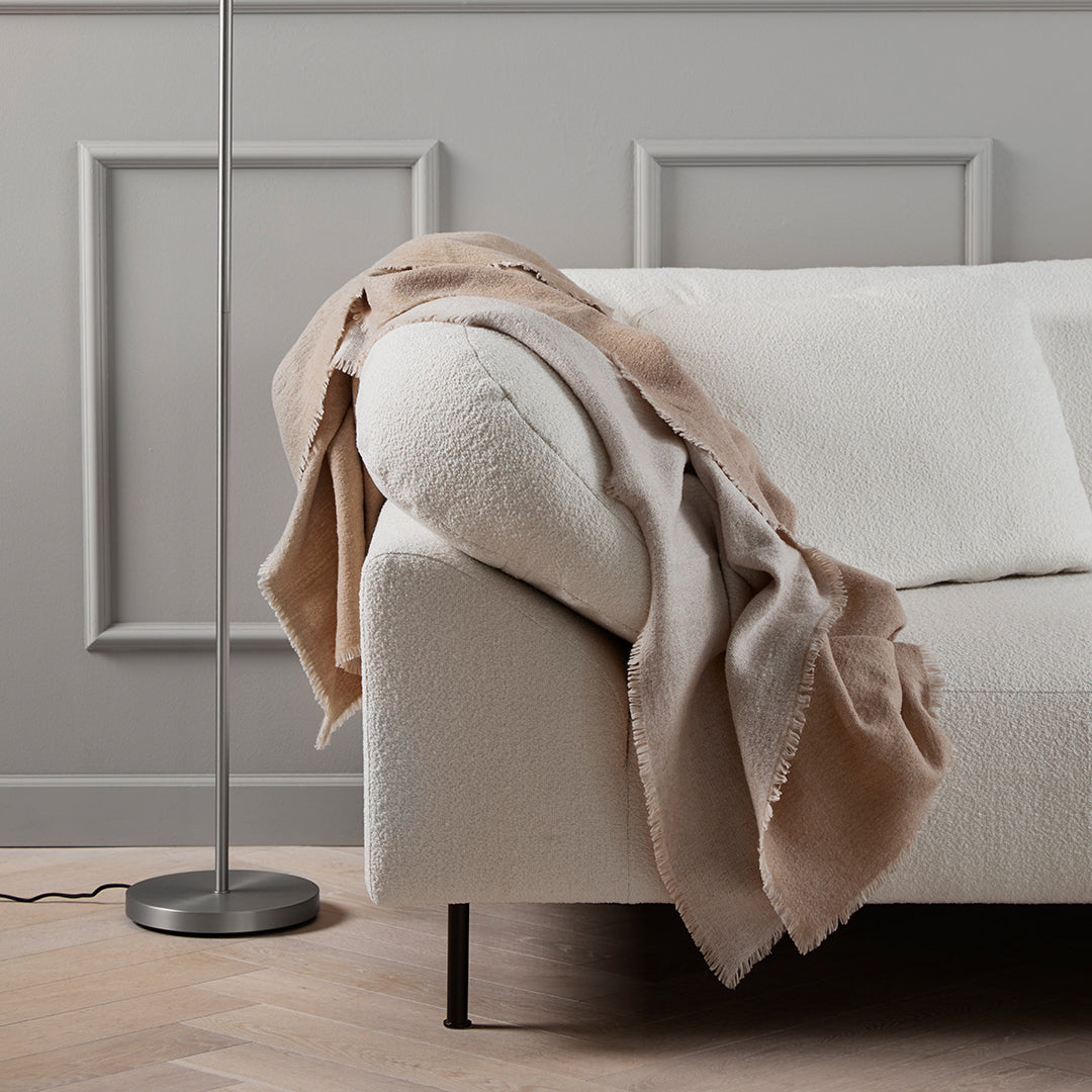The series of throws is named Double because it is woven as a double textile. Double is made of 100% merino wool, which makes it light despite its size. The throws are woven in Northern India, an area known for its high quality craftsmanship and its long tradition making beautiful fabrics. Double is designed to match the Weave cushions with the chestnut brown, navy blue, Indian red and terra beige colours.