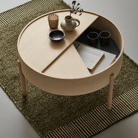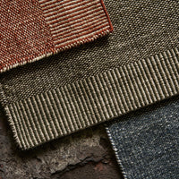 Rombo is a series of rugs designed by Studio MLR. Characterised by the materials used in the rugs. The combination of wool and jute creates a robust surface. The woven construction forms small, distinctive rhombi patterns, which the series is named after. At either end of the rug, straight lines encase the rug creating an elegant contrast between the colours and patterns. The series consists of a small, large and runner rug in each colour.