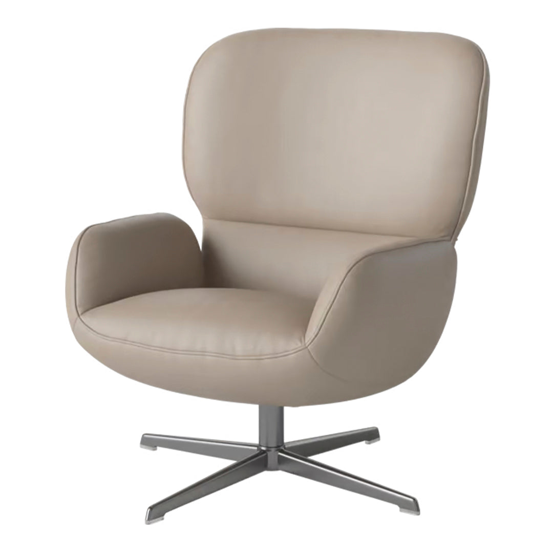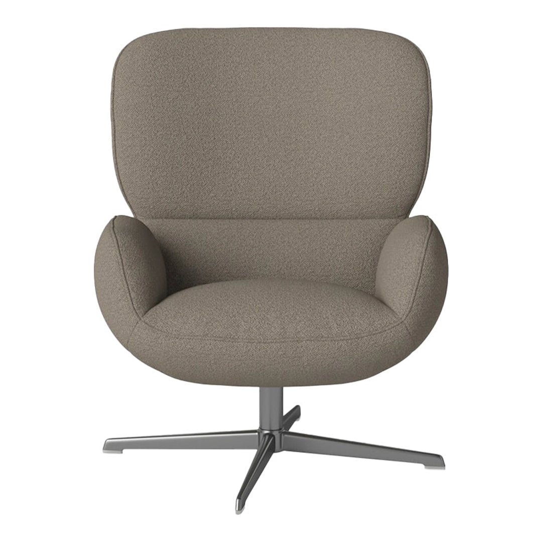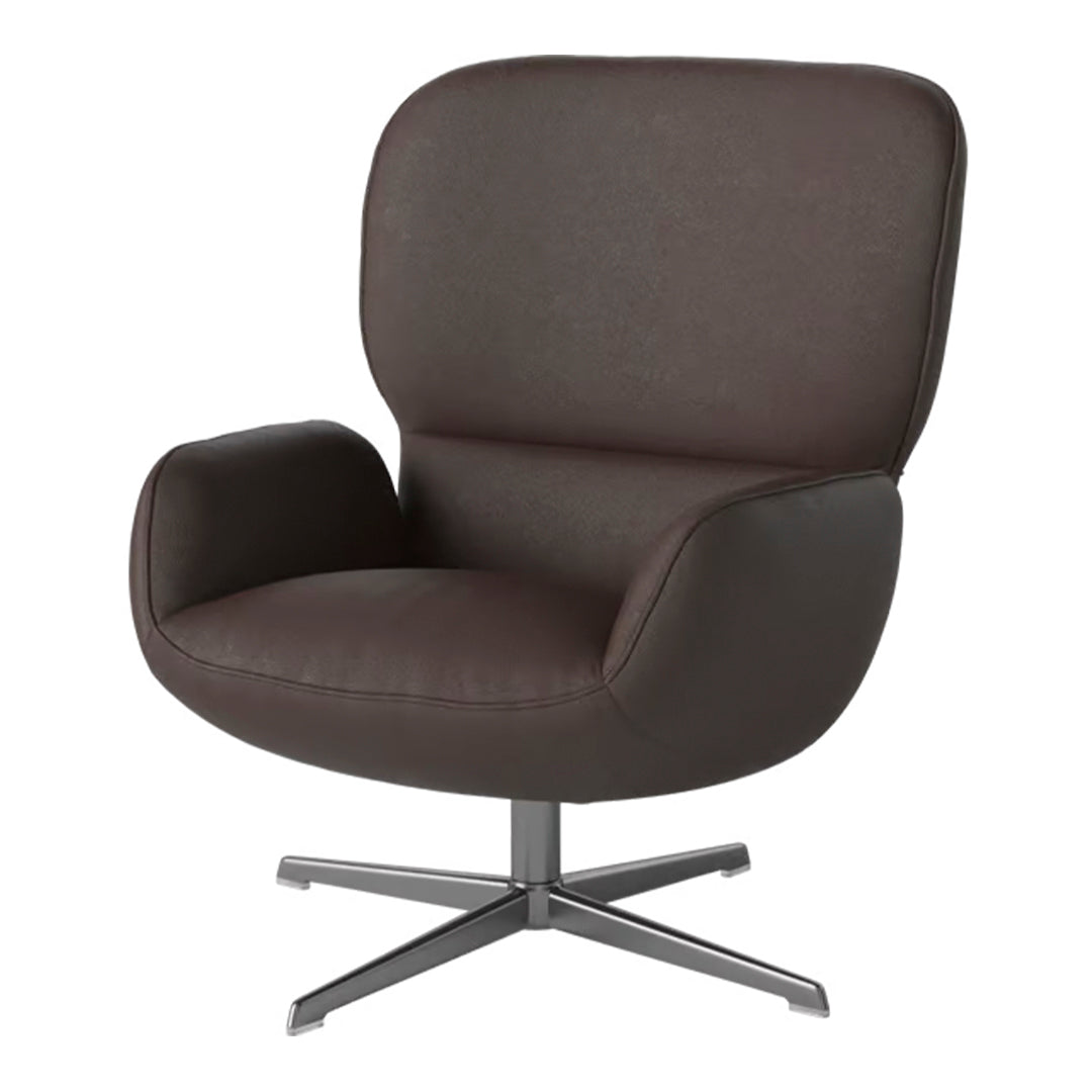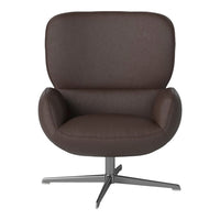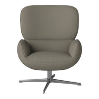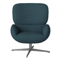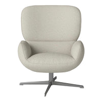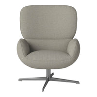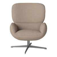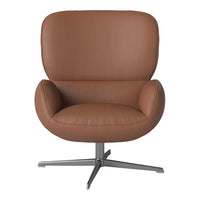 Combining luxurious comfort with a bold silhouette, the generous form of the Ripon armchair offers exceptional support with an oversized headrest. Featuring an innovative return swivel function to ensure it always looks neat in your space. With a smooth, stepless adjustment mechanism and a hidden handle for reclining, the Ripon armchair invites you to sink into its generous form and raise your legs on the accompanying Ripon footstool. Tailor-make your own Ripon chair in your favorite luxury fabric upholstery or traceable leather and choose between two colors for the chair's leg.