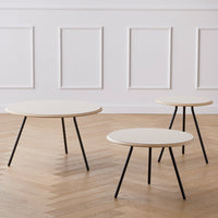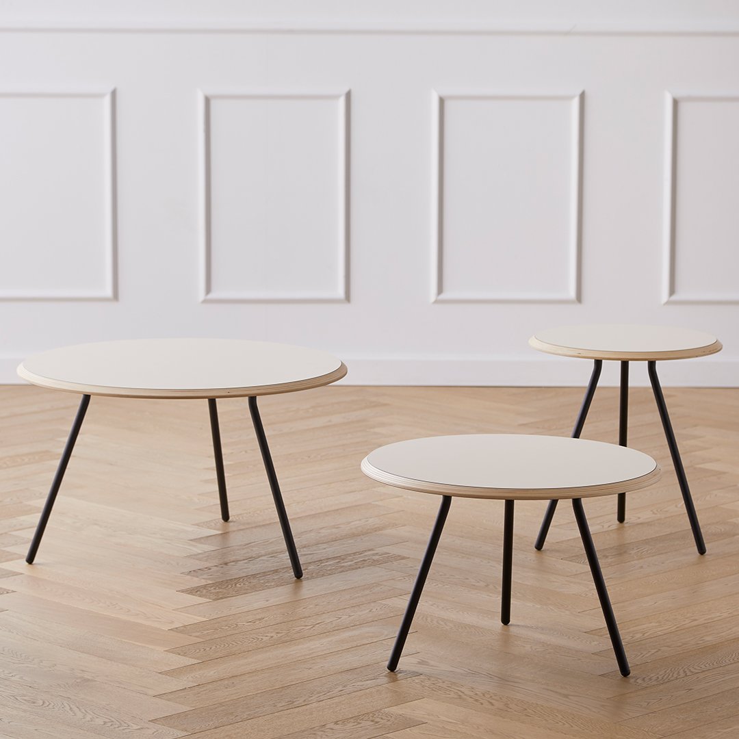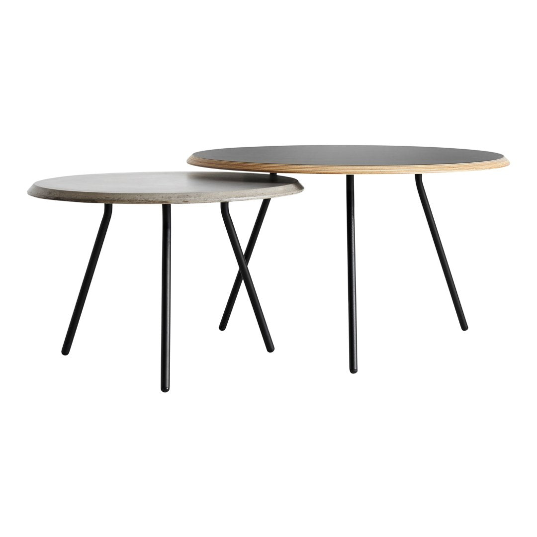 Soround is a simple, sleek and modern take on a coffee table. The construction with the softness of the circular tabletop and the elegant black table legs forms a new interpretation of the classic coffee table. The Soround series comes in different sizes and heights, which allows for overlapping structure. Combine different materials and create distinctive expressions that matches your style. The tables are ideal for indoor lounge areas, living rooms, cafÃÂ ©s and restaurants.