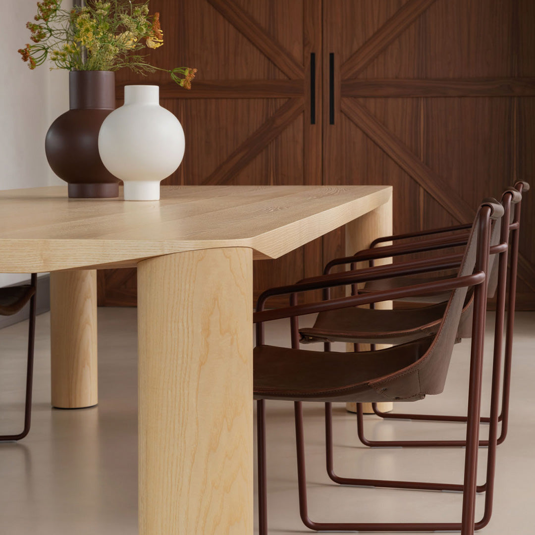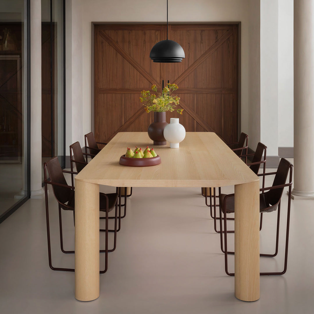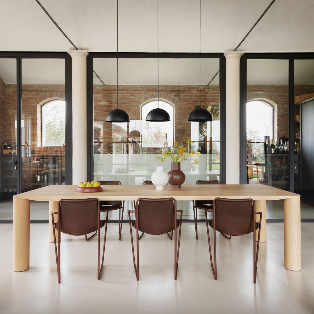 Eggen designed by studioPANG is a table that fits decisively into settings with a strong personality. Those can be both residential and convivial workspaces. The design, with its essential and clean lines, stands out for the visual tension generated by the pressure in the intersection between the leg and the top.