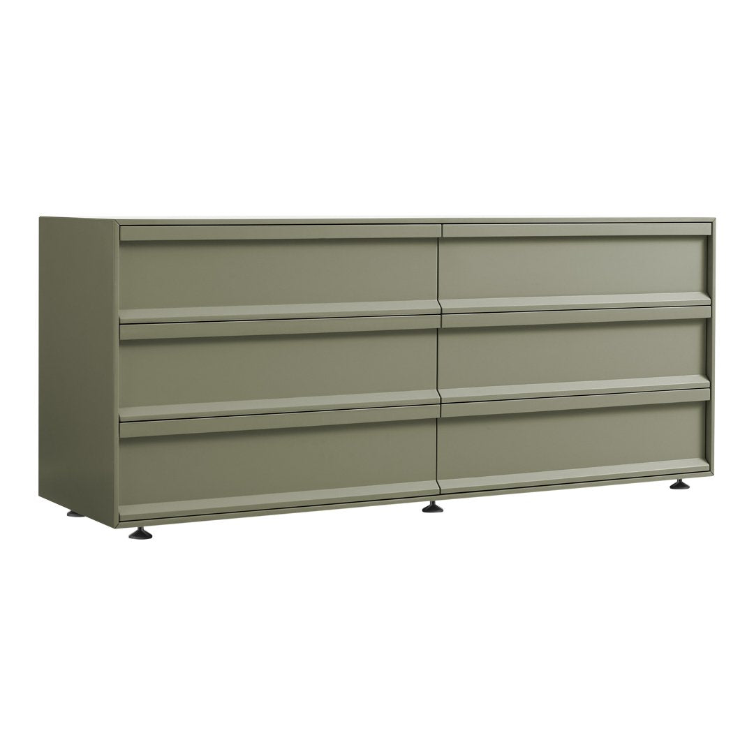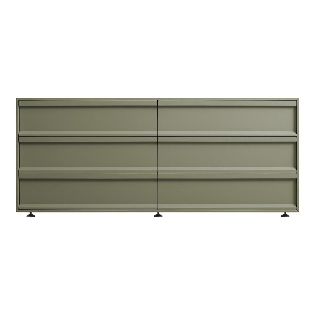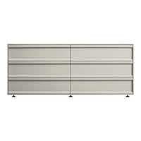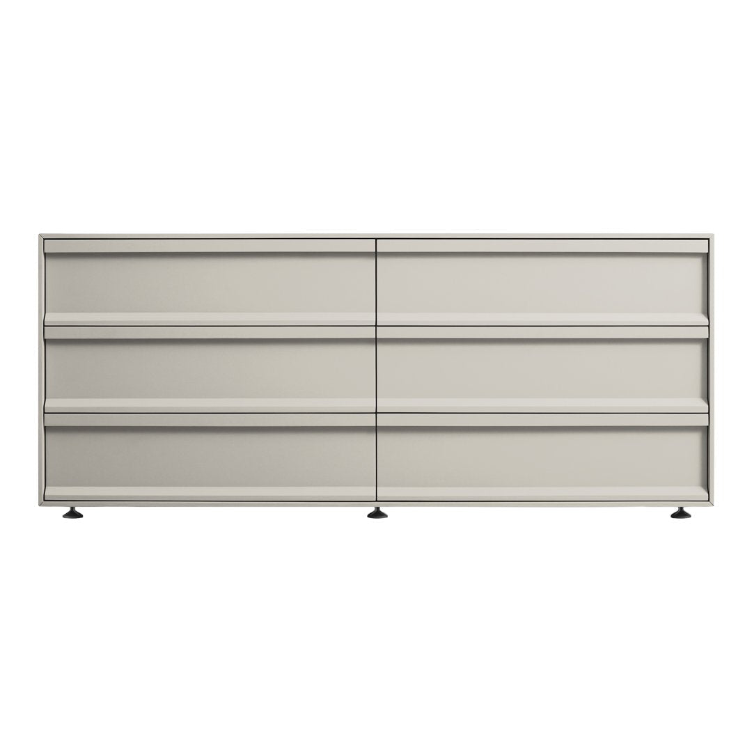 Uncomplicated storage for messy times. Beveled relief drawer pulls are set off by a matte painted finish. Soft close drawers keep the action smooth and serene.