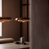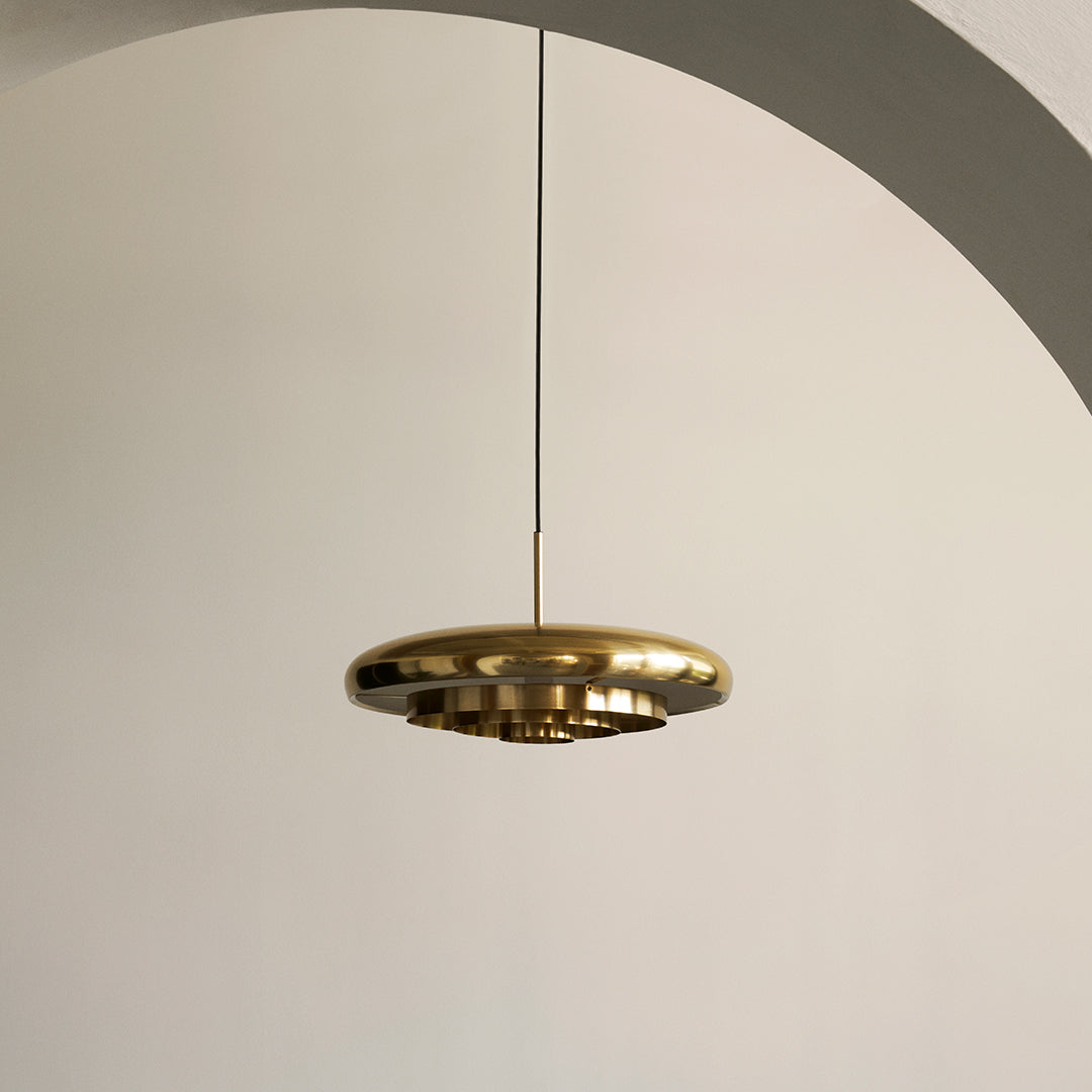 Designed in the 1950s by Alf Svensson and Yngvar Sandström, Resonant is as relevant today as ever. The mid-century pendant lamp is both striking and simple, shaped from polished brass into four concentric shades that direct glare-free light downwards. Well suited to any space, its name alludes to a visual interplay between light and sound, reflecting off the shiny surface and reverberating across a room. Bulb not included.