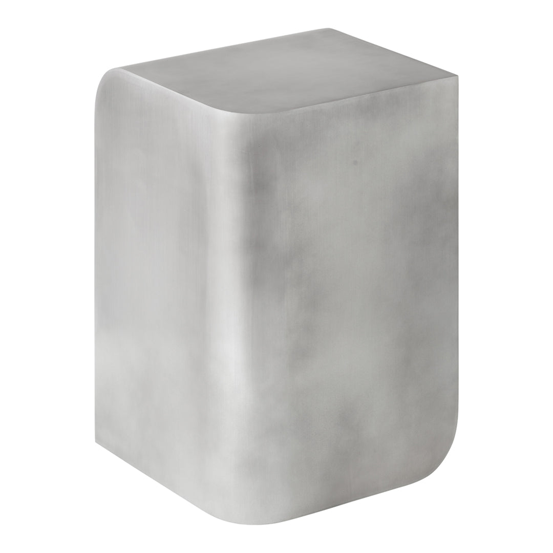 The Volume Side Table offers a unique blend of modern aesthetics, durability and functionality. Crafted from aluminum, it boasts a sleek appearance, polished to create a distinctive rough finish with a unique sheen that adds character and personality to any living space.
