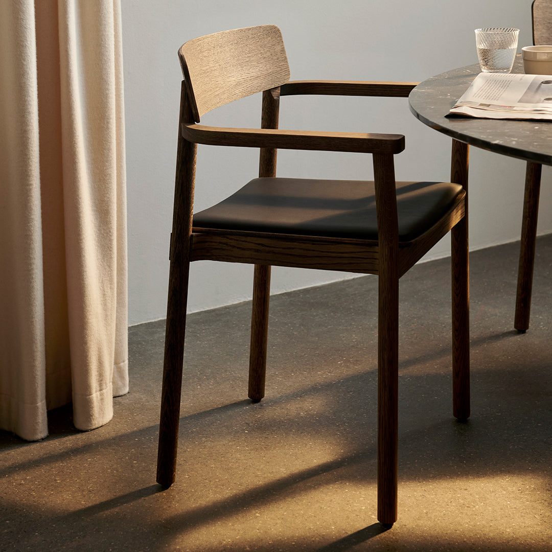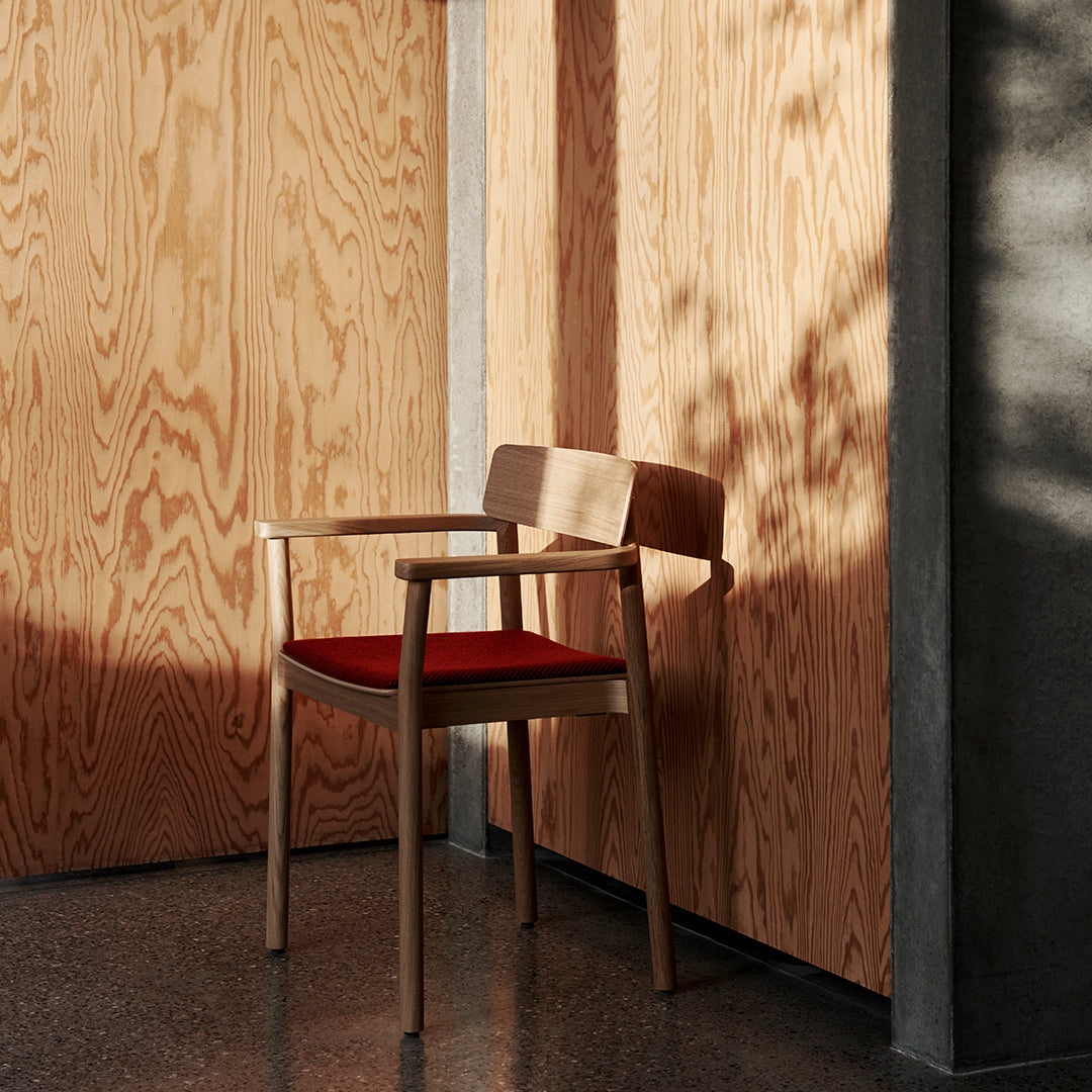 Named after the Betty Nansen theatre in Copenhagen, this armchair’s sturdy frame is crafted from lacquered oak. The webbed seat – whose straps are made from natural linen fibres and woven by hand – offers a soft, cushioned base. The Betty armchair is available in solid wood or wood with webbing.