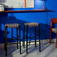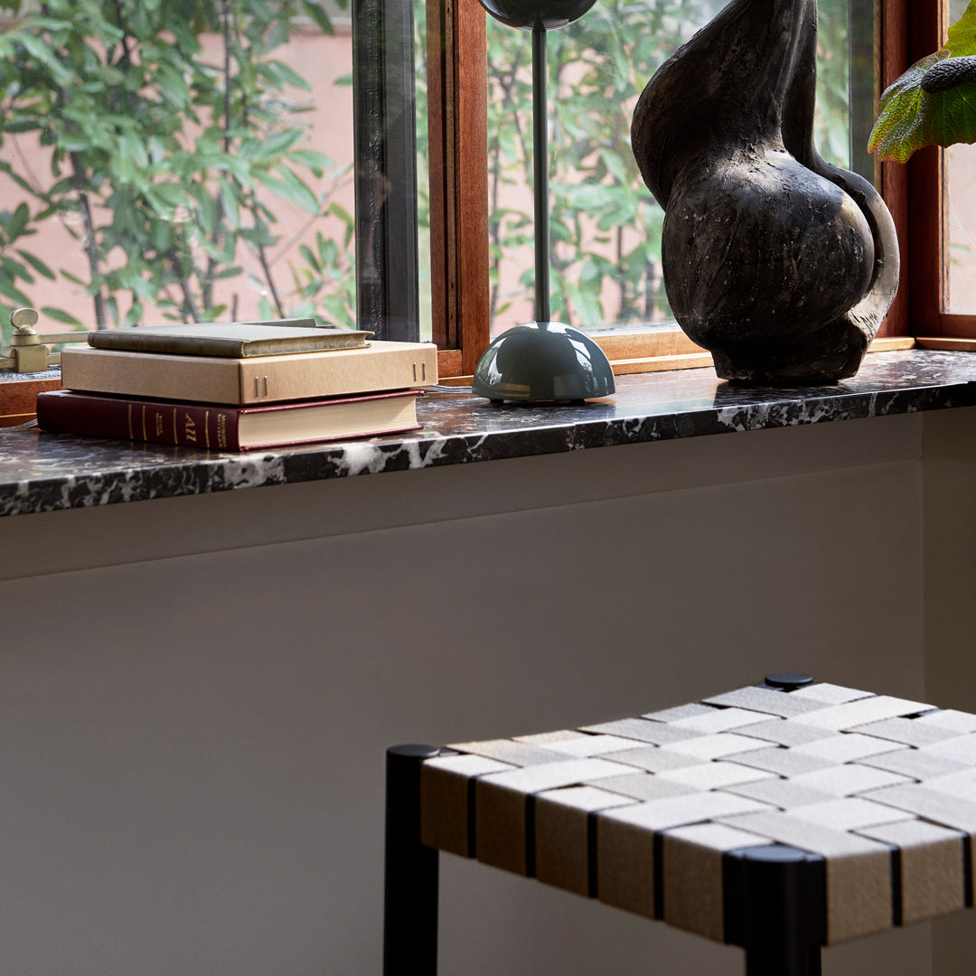 Named after the Betty Nansen theatre in Copenhagen, this stool’s sturdy frame is crafted from lacquered oak. The webbed seat – whose straps are made from natural linen fibres and woven by hand – offers a soft, cushioned base. The Betty stool is available in two heights and the choice of four colour combinations: Black lacquered ash with natural webbing; Lacquered solid oak with natural webbing; Lacquered smoked oak with natural webbing; and Black lacquered ash with black webbing.