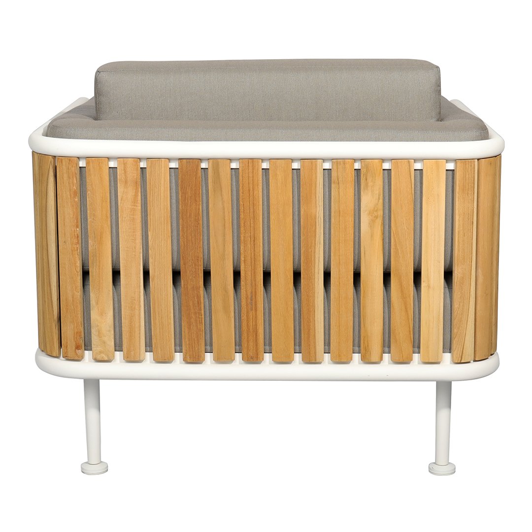 This modular lounge group is inherently versatile. With more than seven modules, a lounge chair and a separate daybed. Designed to stand out and yet blend in, no matter whether you live in the countryside or the city. The teak and the durable aluminium frame ensure it can be placed in a variety of settings and still retain its good looks after years of enjoyment. To complement the lounge group, a choice of coffee tables is available with ceramic and teak tops.