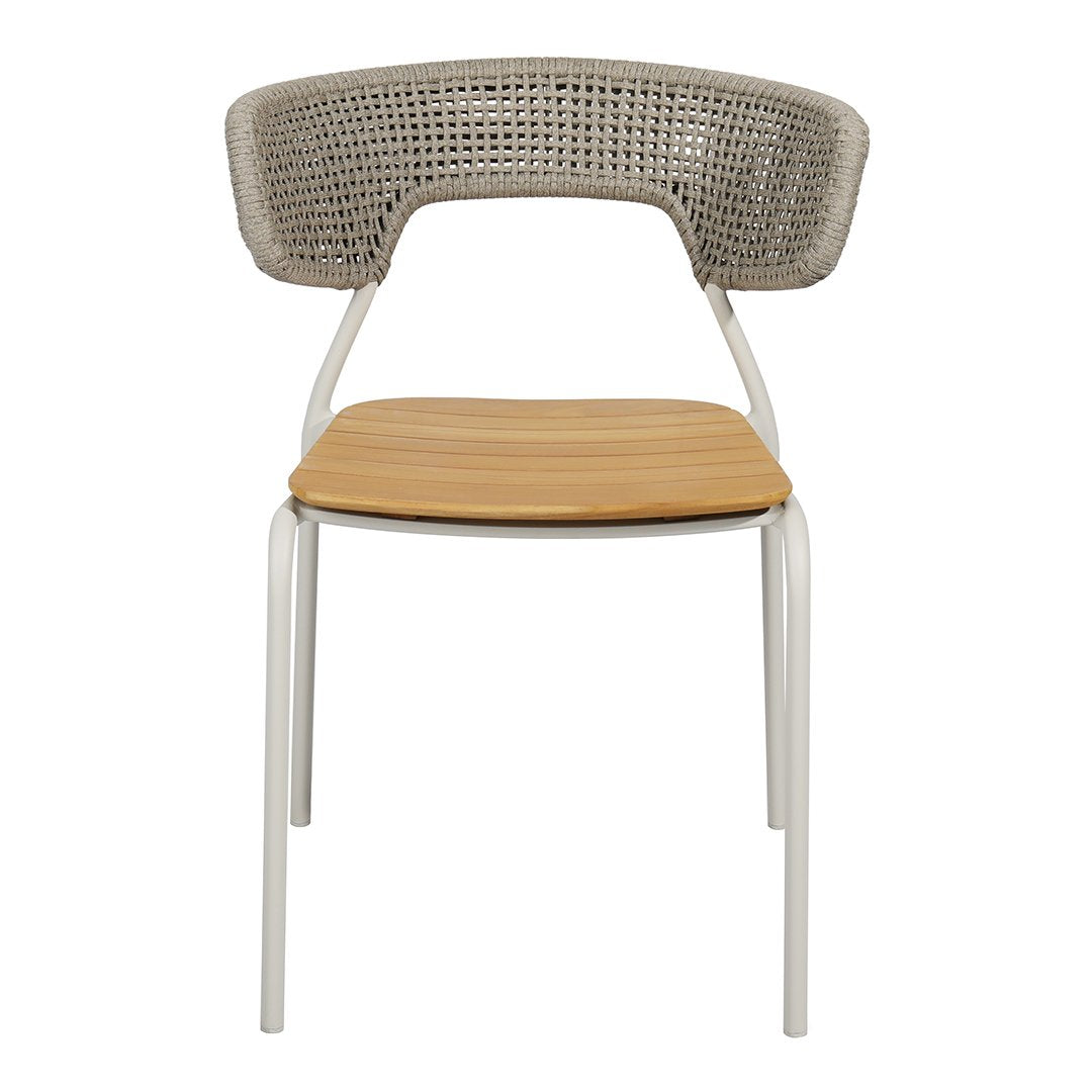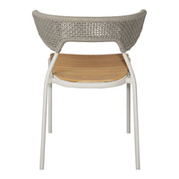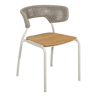 This dining concept offers superior comfort and unique details that set the scene for special moments with friends, family or some peaceful moments alone. The dining chair has a unique aluminium frame, with a teak seat and a handwoven back made of high-quality rope with a soft yet durable surface. Comes in two colour options, as do the matching dining tables.