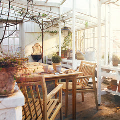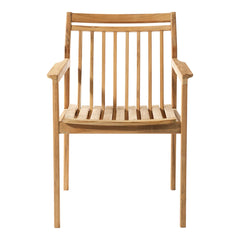 FDB Mobler's garden table chair is created for sunny lunches and long summer nights in the garden. It is a chair in the tradition that FDB Mobler originates from, but newly interpreted as garden furniture. The natural oiled teak gives the same look as the classic garden table chairs we know from the living room. But the material and shape are of course adapted to the function as garden furniture. Together with the series' two garden tables, they form a beautiful whole. The chair has a complete look and a quality which we have not assocoated with garden furniture before.