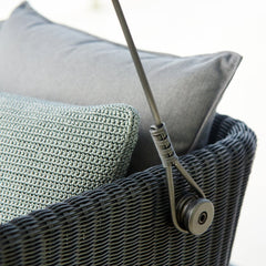 The design process has also focused on solving practical challenges, therefore the swing comes with All-weather cushions. These can be tied to the sofa with a strap specially designed for this purpose, so when the swing sofa is not in use, the cushions stay in place and dry if exposed to a rain shower. The roof and swingsofa is designed in our new "flake weaving" style with wide contemporary Cane-line fibres, that create a unique variation in the surfaces and allow for easy cleaning. Cave swing is tested to 300 kg /660 pounds under normal use. Note that Cane-line recommend that small children are kept under supervision when using the swing. The Cave swing can stay outside in you garden or terrace all year around, however, it is recommended to either mount it to a stable surface or place it in a location where strong winds are not present. This can in the worst case cause damages to the swing or the surroundings. To match with the swing sofa we recommend a white or taupe coloured On-the-move table.