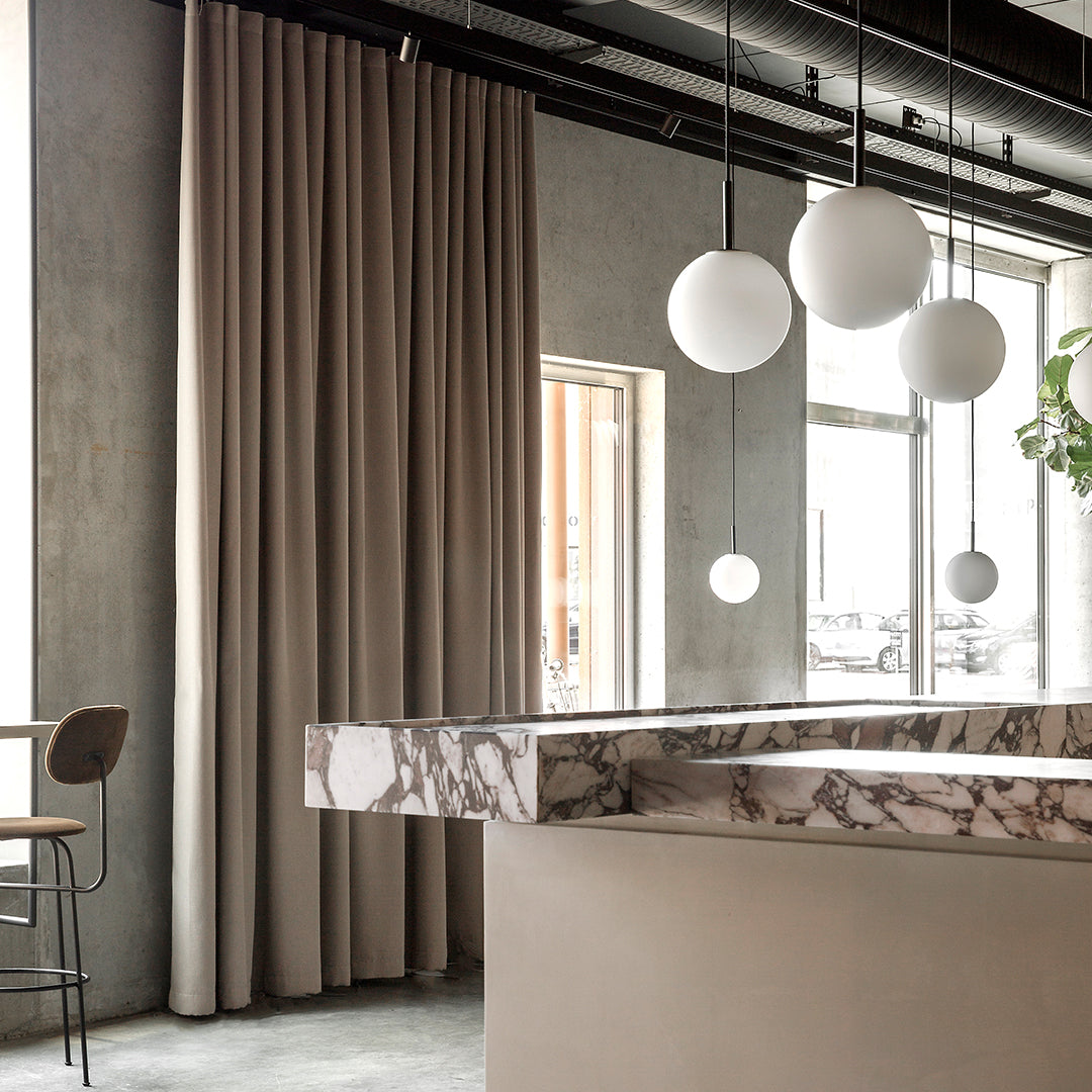 Designed for MENU by Tim Rundle, the TR Bulb's itinerant design moves seamlessly from space to space and room to room, installed by simply screwing it into pendant sockets. The inspiration for the TR Bulb came from the untethered way we live today; moving often, sometimes multiple times within a year. "I wanted to create a high quality, technically sophisticated lamp that was, in essence, a light bulb", Rundle explains. Following the success of the original TR Bulb, MENU has partnered with the London-based Rundle to diversify the range of offerings from the TR series. "When a light has such a simple form, subtle differences can create a distinctly different character. The new shiny version offers a more classical feeling to the design", Rundle says.